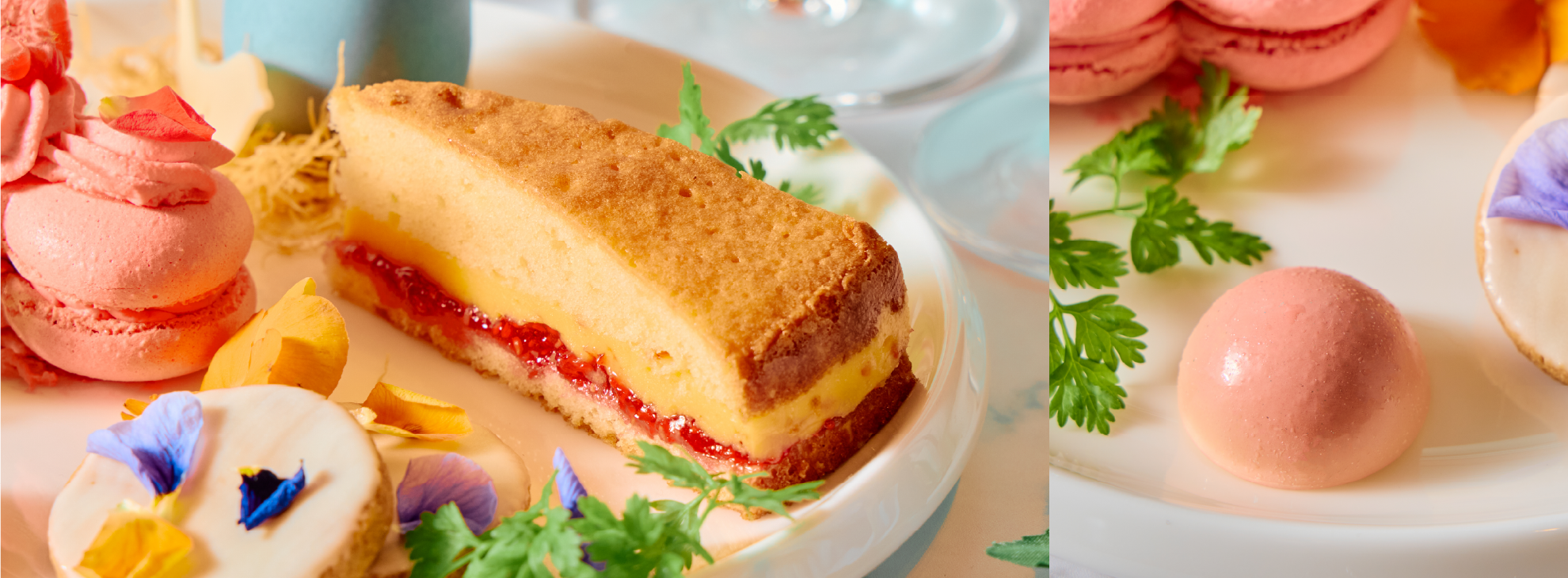 バラの香りを纏わせたアフタヌーンティーに欠かせない王道のヴィクトリアケーキ。自家製フランボワーズジャムとバタークリームの甘酸っぱくも濃厚な味わいが、優雅な余韻を残します。
