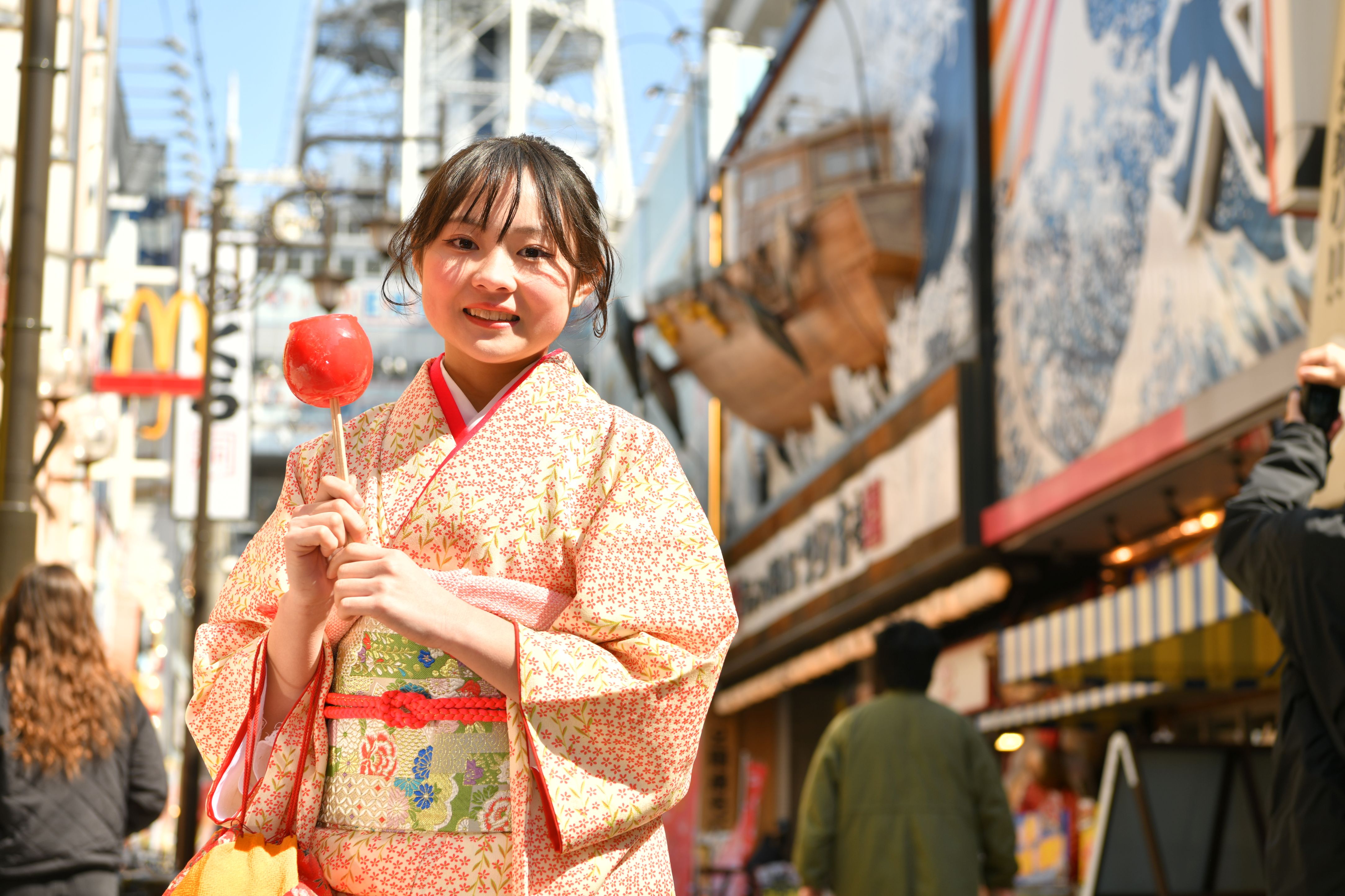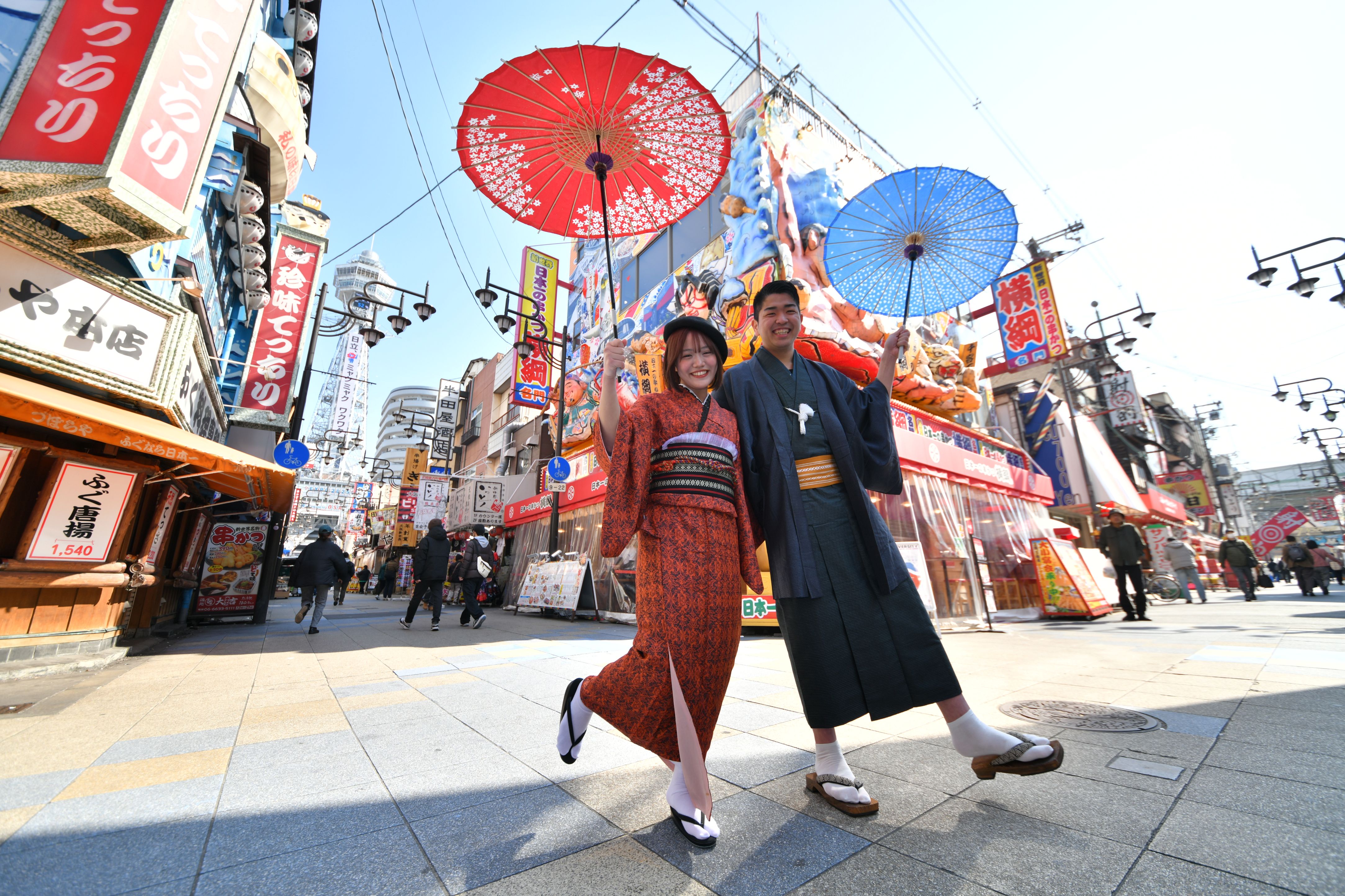 季節ごとの賑わい、色とりどりの看板が並ぶ景色、地元の方とのふれあいなど一歩一歩が“大阪らしさ”に満ちたこの街で、着物とともに、特別な思い出づくりをサポートいたします。
