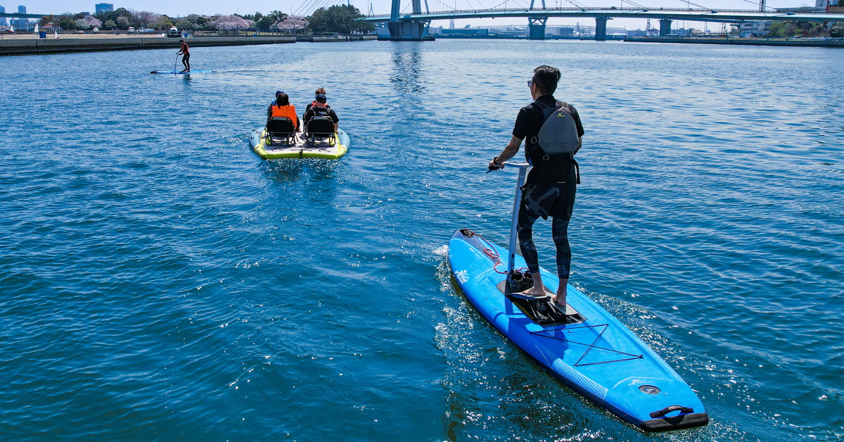 都会にいながらマリンアクティビティ、クルージングなどのレジャー体験ができる複合施設「大阪北港マリーナ」。大阪北港マリーナのマリンアクティビティでは、ボードの上に乗りパドルを使って漕ぐ「SUP」や足漕ぎペダルで進むユニークな水上アクティビティ「HOBIE」、猛スピードで水面を走る「水上ジェットコースター」など大人からお子様まで楽しめる体験となっています。大阪北港のいつもと一味違った景色を眺めながら、海上散歩を楽しんだりお子様と一緒になって楽しめる公園「PARK HULL」で過ごしたり遊び方は様々です。