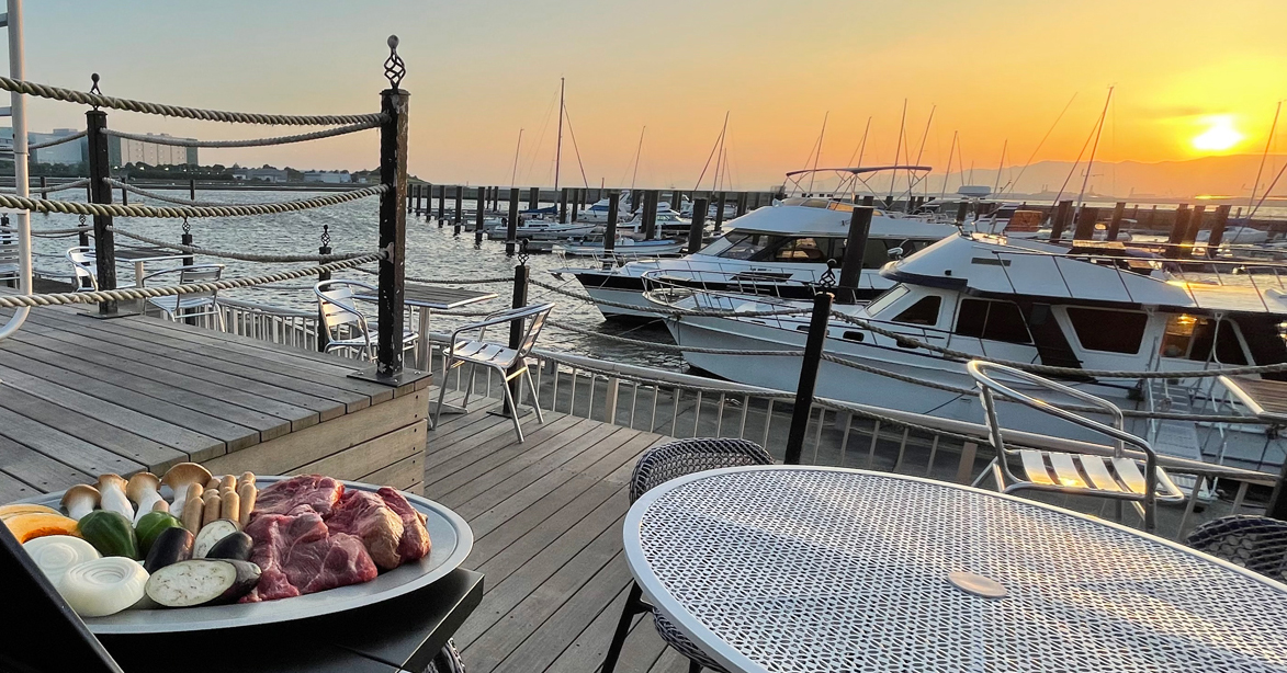 大阪北港マリーナでは、一年を通じて本格BBQが楽しめます。海とマリーナを望むロケーションに広がるBBQスペースは、開放感たっぷりで非日常を味わえる空間。特に夕方には、水面に映る夕陽とともに贅沢なひとときをお楽しみいただけます。春の陽気と海風が心地よいGWは、ファミリーや友人とのお出かけにもぴったり。自然を感じながら特別な時間をお過ごしください。
