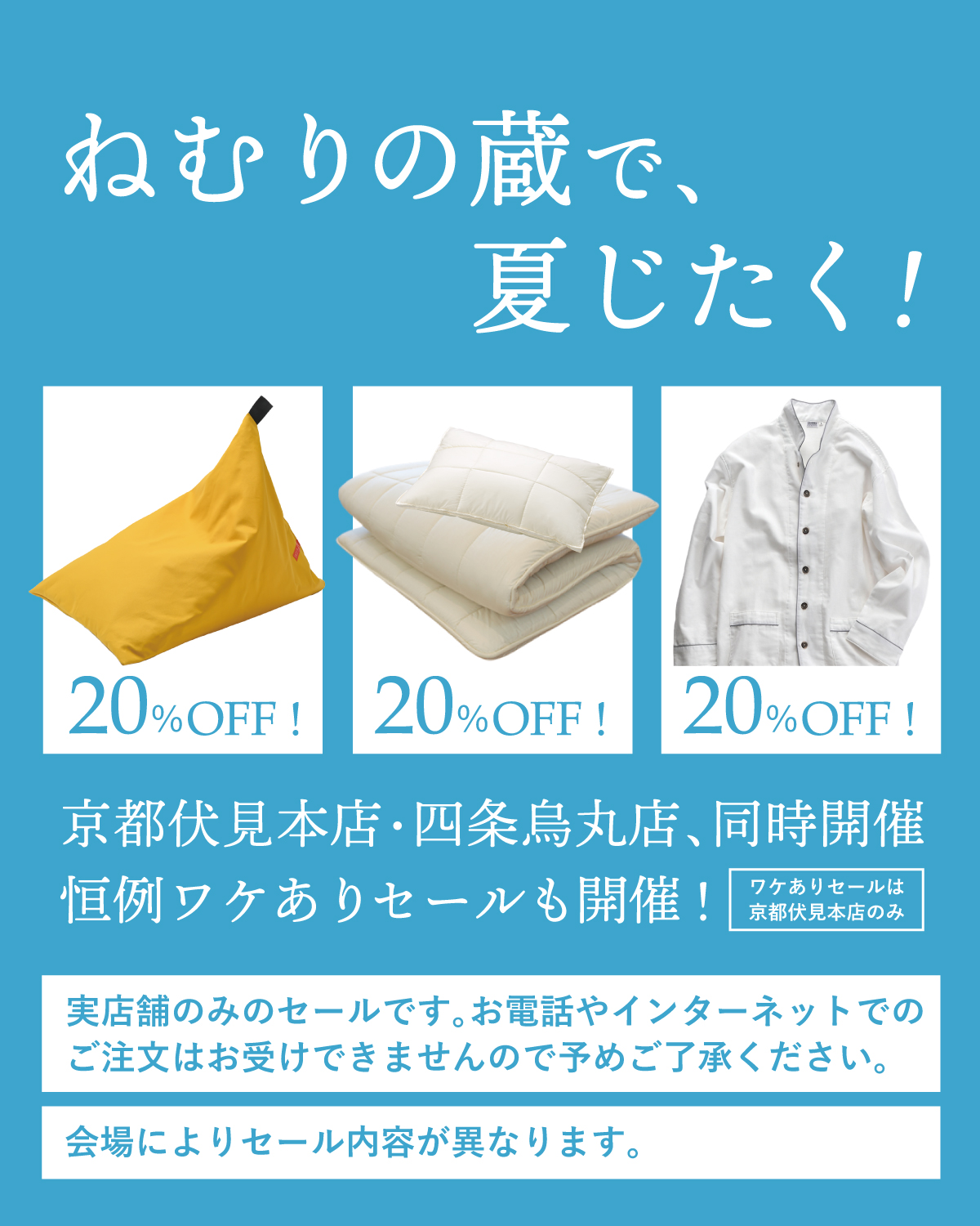 <ねむりの蔵 京都伏見本店・四条烏丸店 Early Summerセール概要>