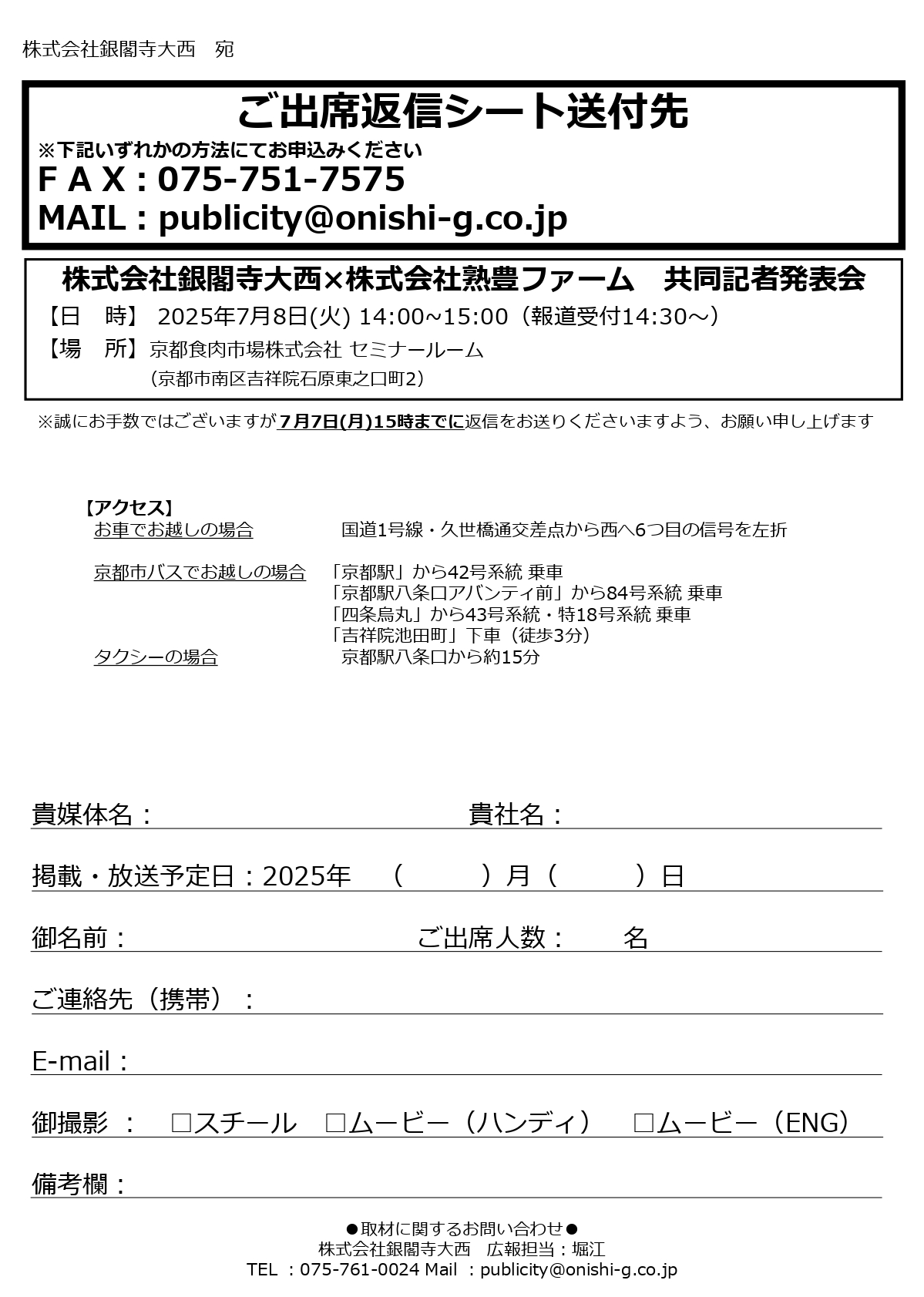 株式会社銀閣寺大西×株式会社熟豊ファーム 共同記者発表会 開催概要
