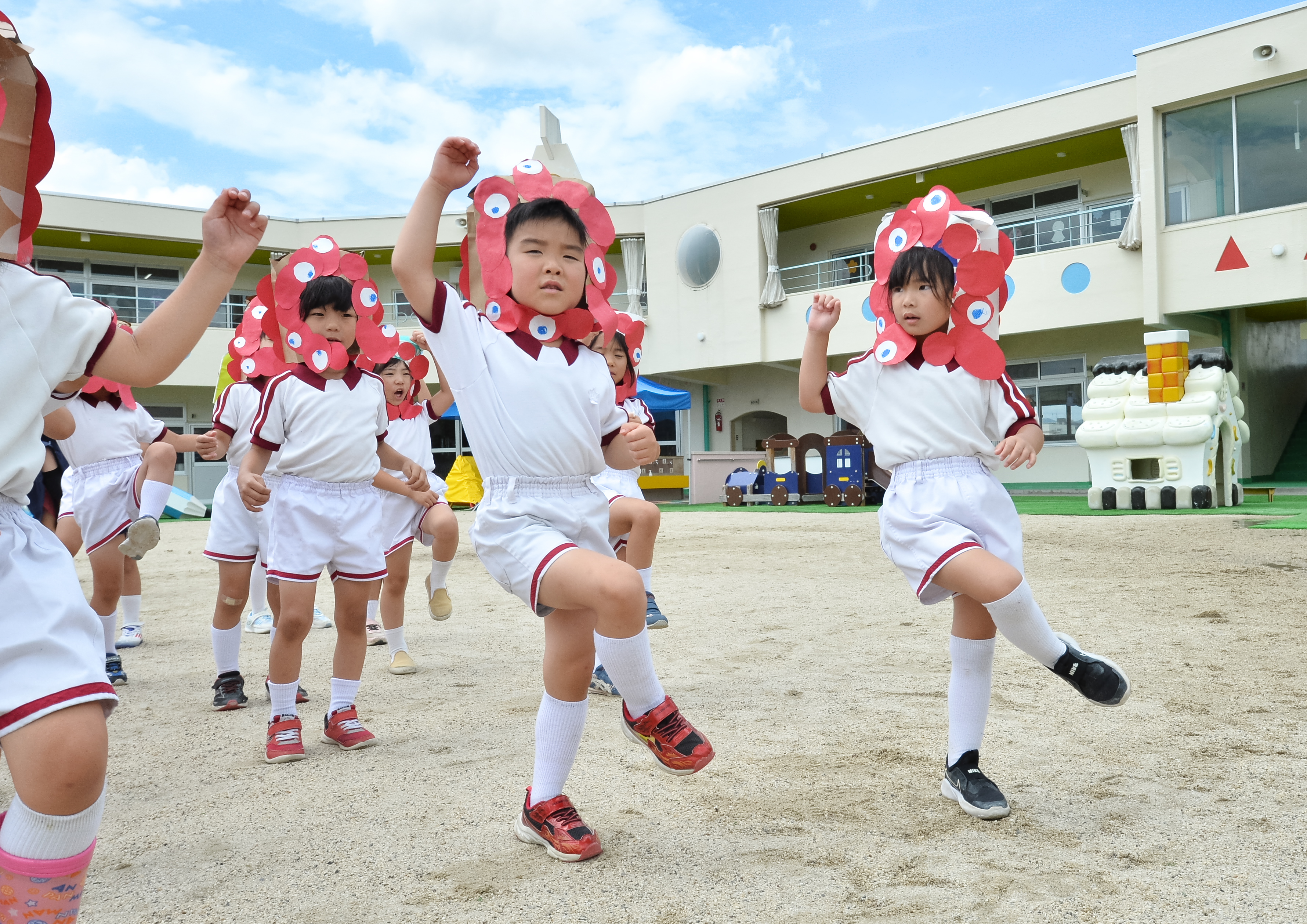 当園では、コスモスポーツクラブと共同で作り上げた独自の体操「HGG(ヒューマン・ジムナスティクス・グループ:人と協力する体操)」を園児の教育プログラムに取り入れています。 HGGは、TEAM EXPO2025の共想チャレンジに登録しています。園児は、体操を通じで体幹を鍛えるだけではなく、「聞く力」「人と協力しようとする心」「目標に向かって頑張ろうとする意志の力」も育んでいます。大阪で開催されるラグビーやハンドボールなどのプロスポーツ試合の前のオープニングショーに園児が出演し、パフォーマンスも披露しています。日本をはじめ世界にもHGGを発信していきたいと思います。