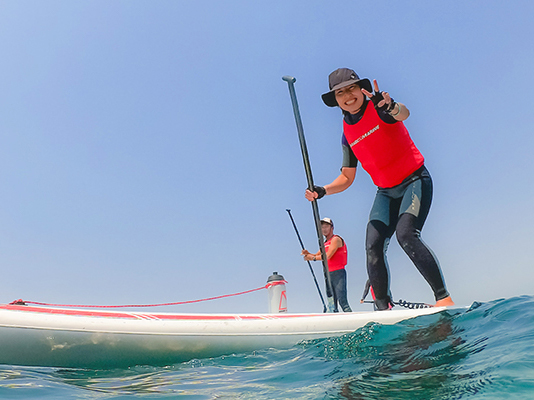ボードの上に立って漕ぐ「SUP(スタンドアップパドルボード)」や足漕ぎカヤック「HOBIE(ホビー)」、人気のアクティビティ体験。初めての方でも安心。お子さまから大人まで、誰でも気軽にチャレンジいただけます。