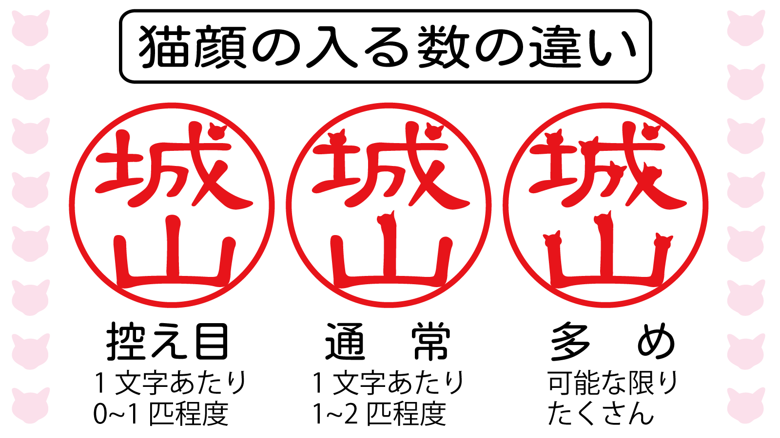 一般的な印鑑の形を元に、名前の一部(トメ・ハネ・角など)を猫の顔にデザイン。