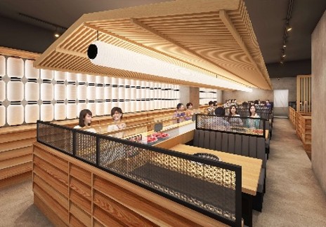 2階は、全長12.5メートルの直線レーンを導入し、お料理をレーンでお席までお届けします。エンタメ要素をプラスしつつも、木を基調とした内装に提灯を飾り和の落ち着いた雰囲気です。2名様用カウンター席は、デートにもおすすめです。3階は、最大6人まで利用できる焼肉店には珍しい円卓型のテーブル席などを設置し、ご家族やグループのお客さま向けのフロアです。最大80名様の宴会のご利用も可能です。4階は、木の格子戸やすだれで仕切られた個室をご用意。プライベート空間も確保できるので、会食や接待などフォーマルなシーンにもご利用いただけます。