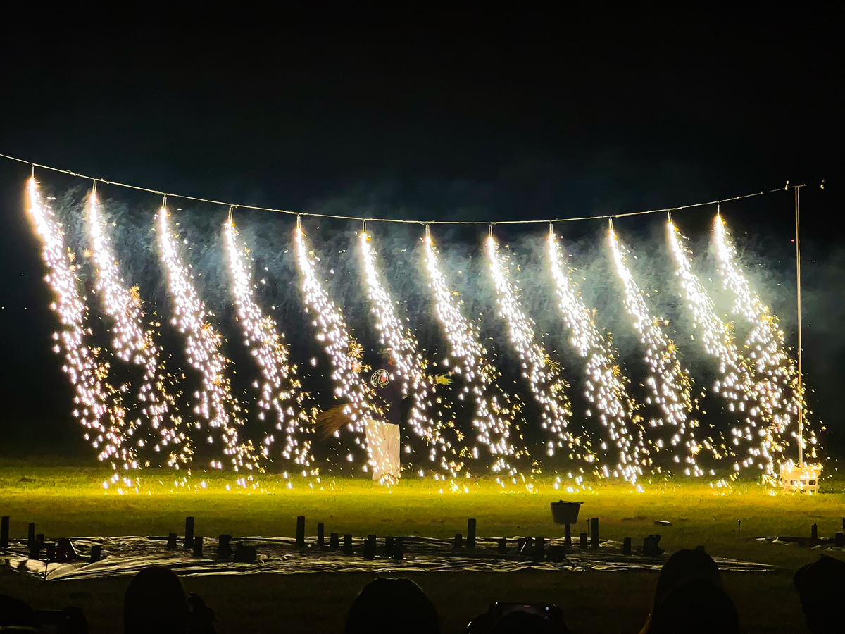 プロ花火師・葛城煙火による、家庭用の噴き出し花火や打ち上げ花火を組み合わせたオリジナル演出。15分ほどの小規模ショーながら、色彩やリズムにこだわった幻想的な光の世界が広がります。 玩具花火のナイアガラの滝やスターマインも登場予定。お子さま連れでも安心してご覧いただける、“ちょうどいい距離感”の花火体験をお届けします。