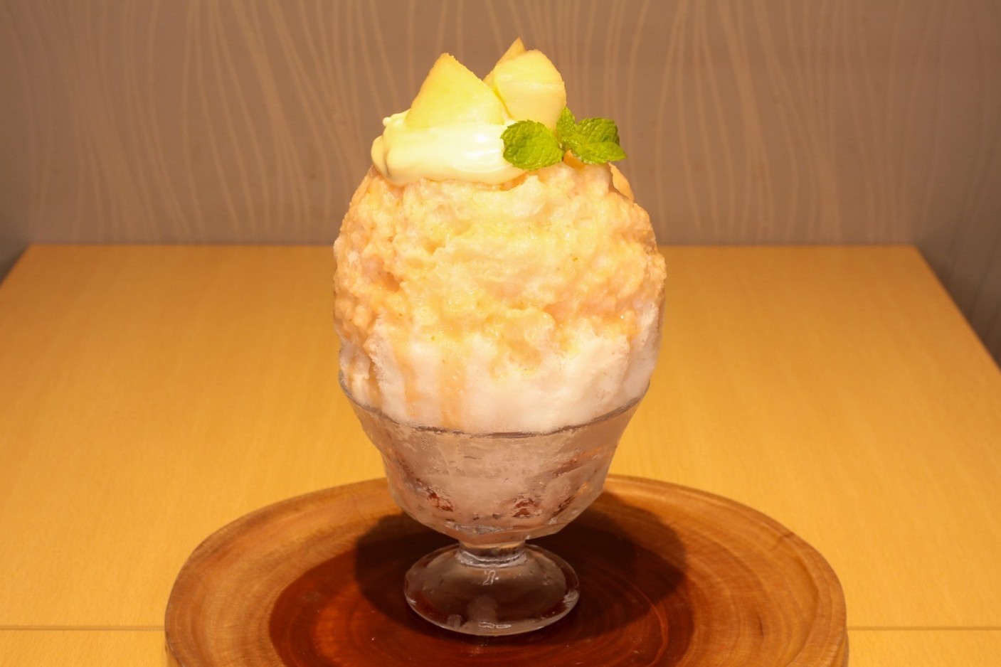 今が旬の白桃を使ったかき氷。開店当初から夏のNO.1人気メニュー。口いっぱいに桃の味わいが広がります。