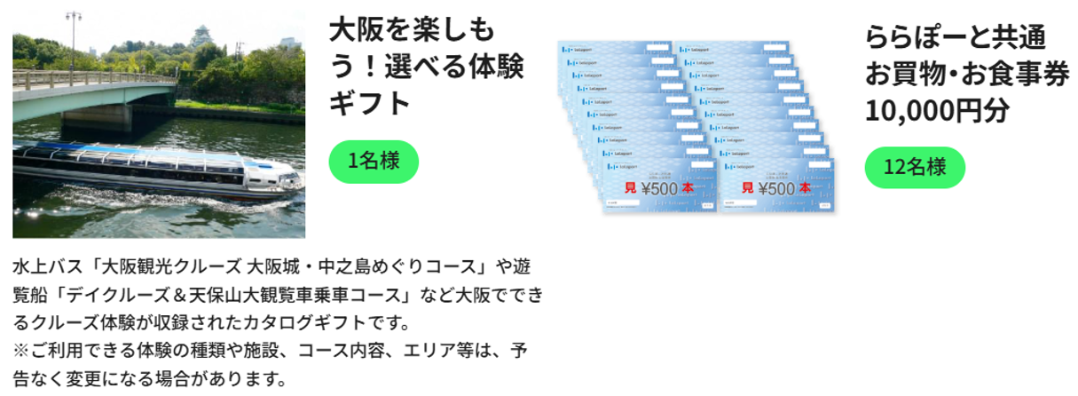 大阪を楽しもう!選べる体験ギフト 1名様