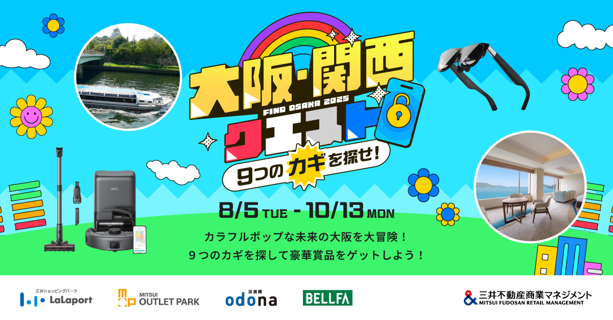 三井不動産商業マネジメント株式会社(本社:東京都中央区、代表取締役社長:大林 修)は、TikTokで話題のカラフルクリエイター・MIOCHINとコラボした参加型キャンペーン「大阪・関西クエスト~9つのカギを探せ!~」を、2025年8月5日(火)から10月13日(月・祝)の期間限定で開催します。