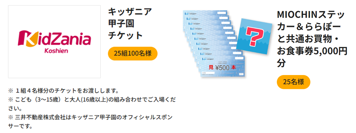MIOCHINステッカー&ららぽーと共通お買物・お食事券5,000円分 25名様