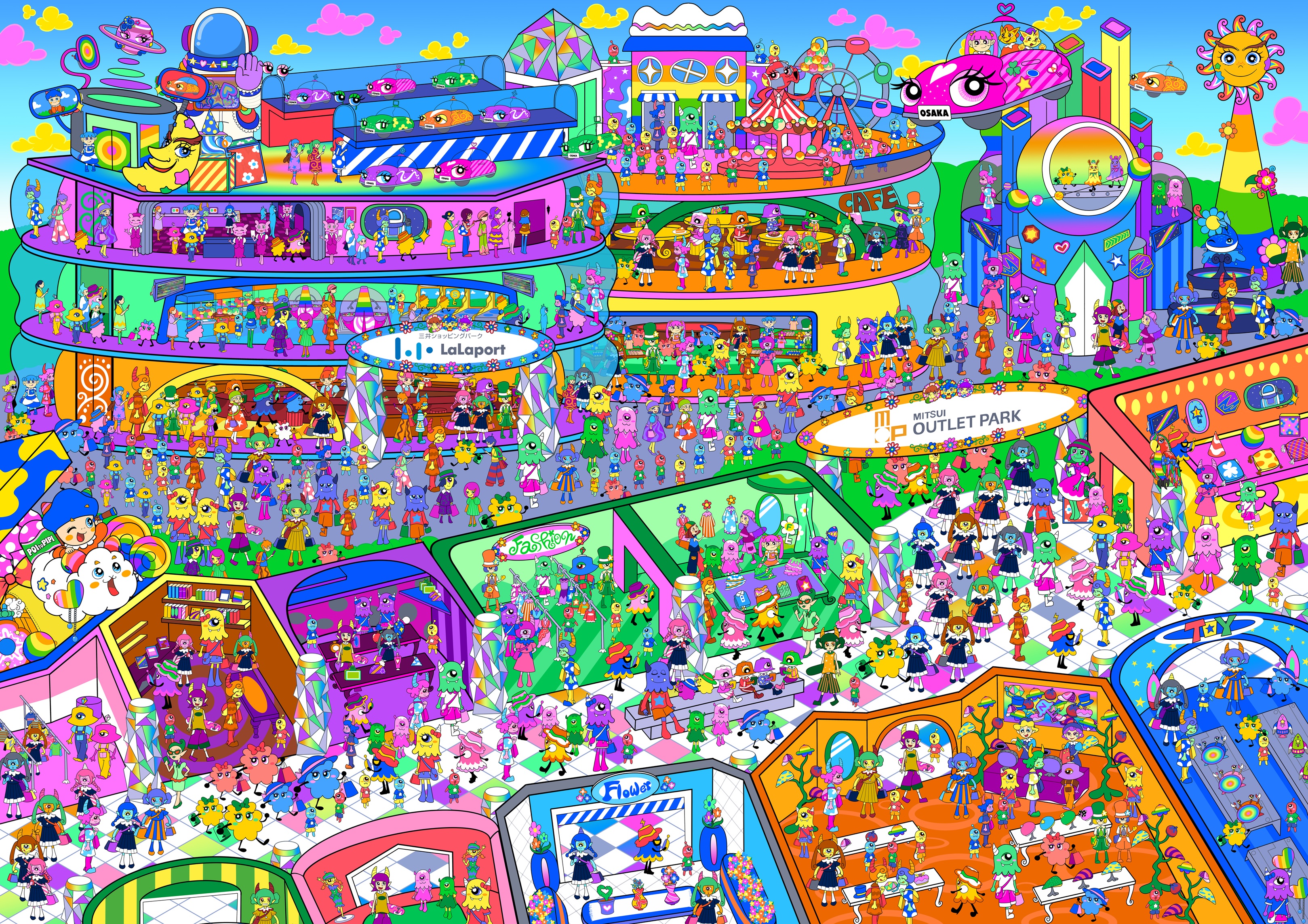 本企画は、「未来の大阪の商業施設」をテーマに、MIOCHINさんが描き下ろした超高難易度イラスト探し。イラストから9つのカギを探し、カギを見つけると浮かび上がるキーワードを特設ページに入力し応募すると、抽選で計90名様に豪華賞品が当たるチャンス!この機会にぜひご体験ください。