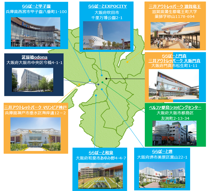 ■関西の三井ショッピングパーク ららぽーと・三井アウトレットパーク・ベルファ都島ショッピングセンター・淀屋橋odona