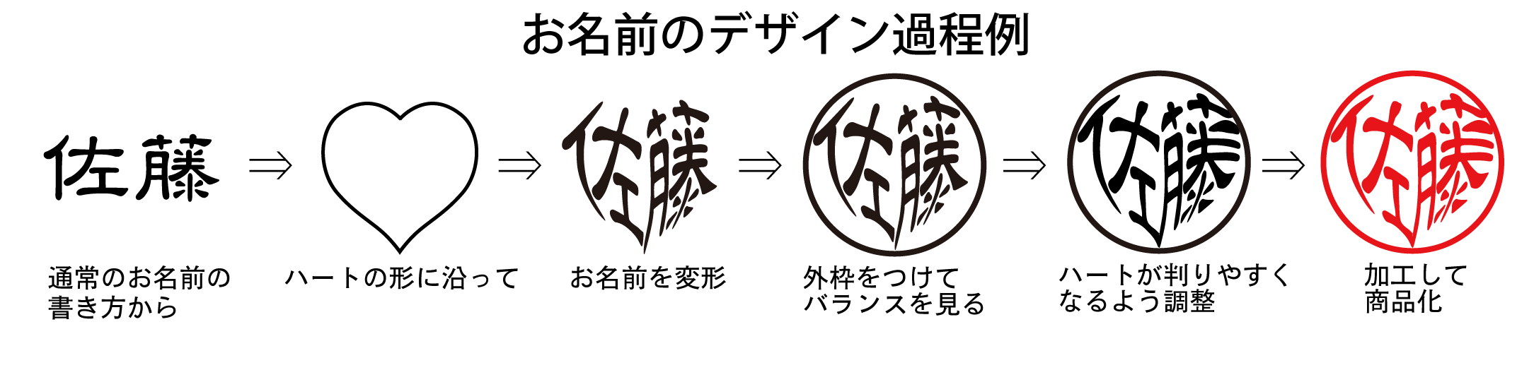そのため、書体を選ばず自然な形でお名前の判読性とハートの形を融合することが可能となりました。
