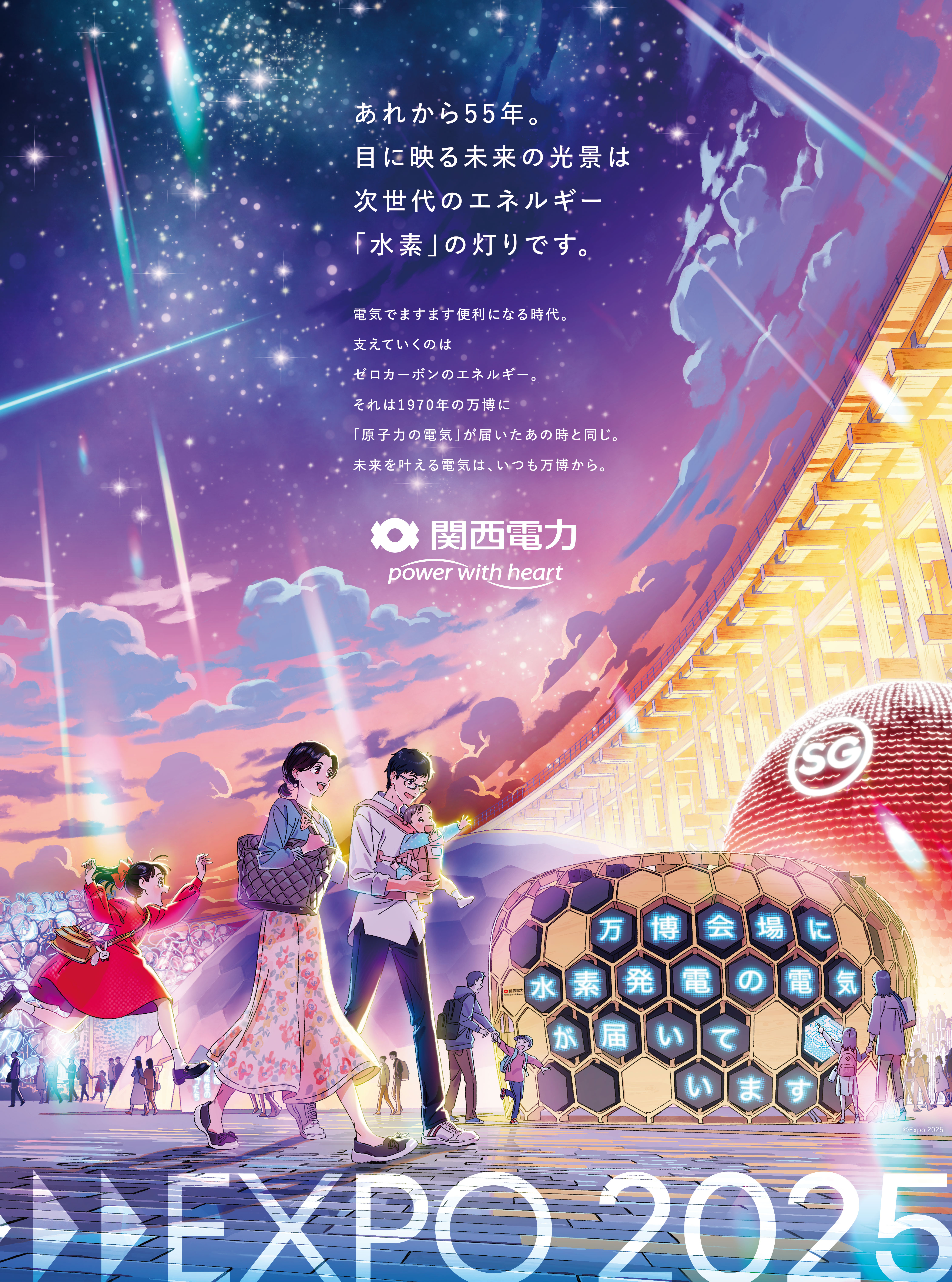 関西電力株式会社(本社:大阪府大阪市北区 取締役代表執行役社長 森 望)は、2025年8月25日(月)より、万博におけるゼロカーボン社会実現への挑戦をテーマにした新広告を公開し、朝日新聞・読売新聞(大阪本社版朝刊・一部地域を除く)およびJR大阪駅 中央改札口で掲出を開始します。