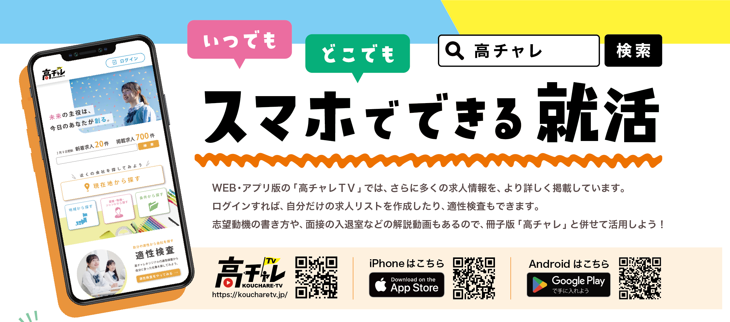 高校生は、7月の求人情報解禁後から求人票を直接閲覧できるので、そのまま進路指導の教員へ相談し、職場見学から応募までスムーズに進められる環境を整えています。