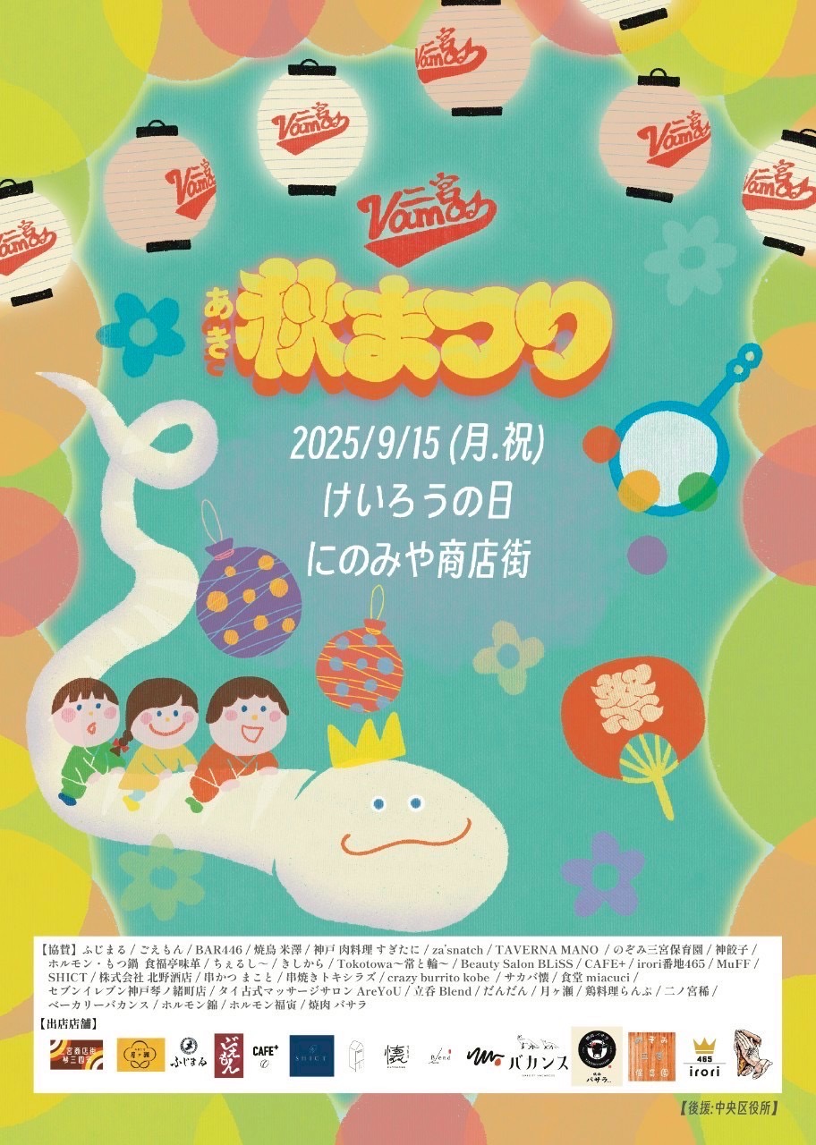 神戸市中央区・二宮商店街で、2025年9月15日(月・祝)に「VAMOS二宮 秋祭り2025」