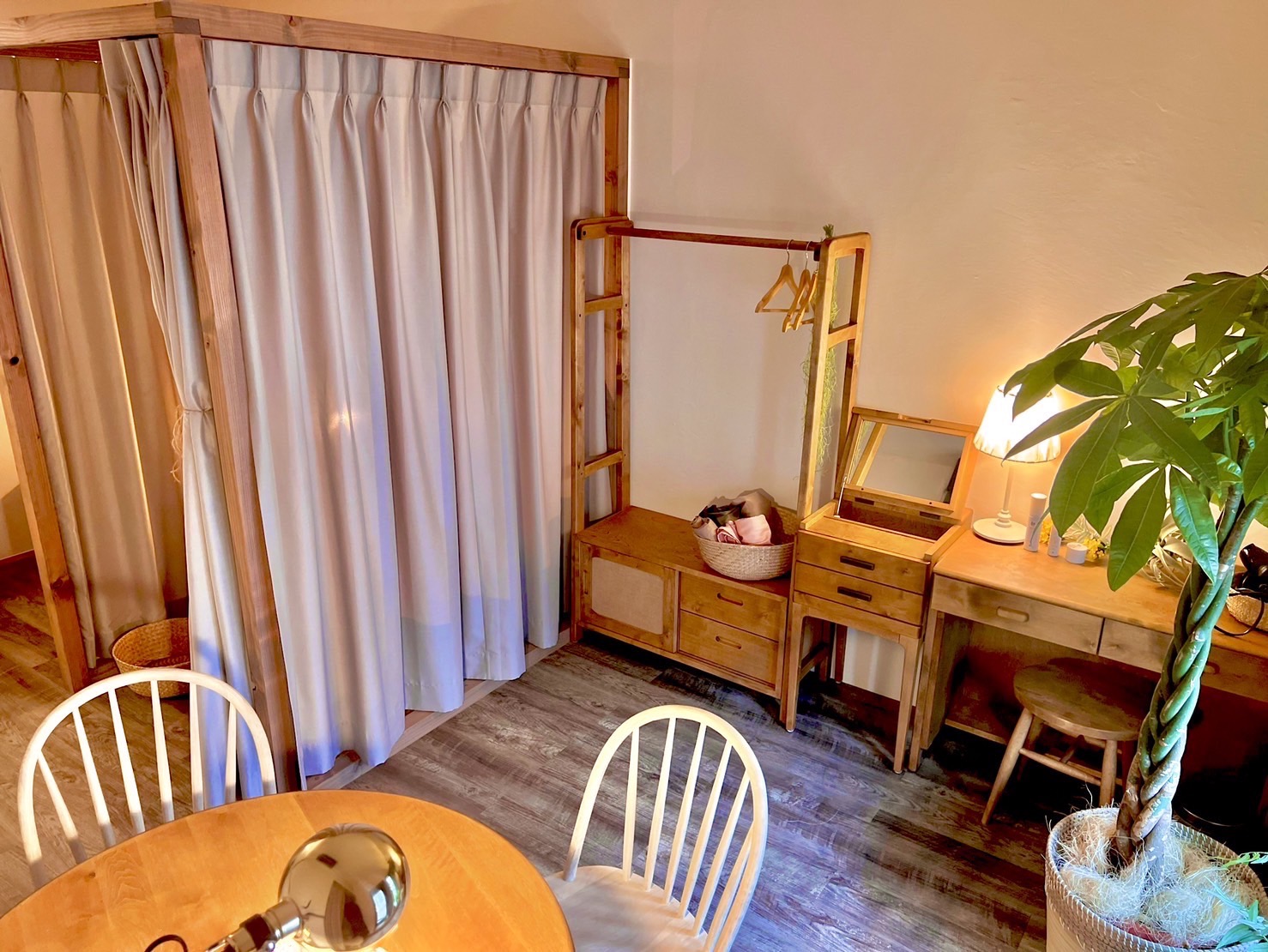 皆様の身体の中に入るよもぎ蒸しは、規定の農家さまより厳選して、お取り寄せしたものを使用しております。また、店内の家具にもこだわっており海外から取り寄せたアンティークなものを使用しております。