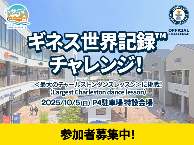 りんくうプレミアム・アウトレット(所在地:大阪府泉佐野市 運営:三菱地所・サイモン株式会社)は、開業25周年を記念した特別イベントとして、2025年10月5日(日)にギネス世界記録™に挑戦する「りんくう25周年ギネス世界記録™チャレンジプロジェクト」を実施します。なお、プレミアム・アウトレットにおいては初のギネス世界記録™挑戦となります。