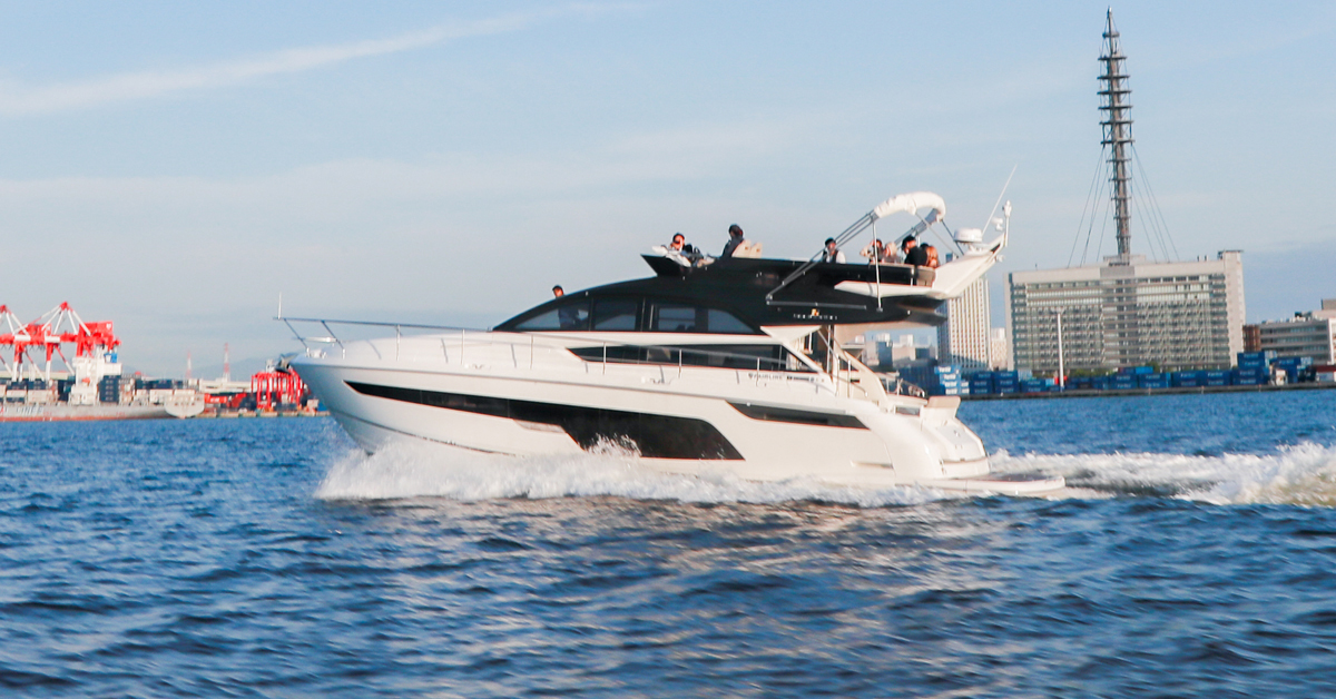 当日は、英国フェアライン社製の「スコードロン50」と「フェアライン33」の2艇を運航予定。スコードロン50は全長15m超のラグジュアリークルーザーで、フライブリッジや広々としたサロンを完備。フェアライン33はスタイリッシュなスポーツクルーザーで、デッキからの臨場感あふれる花火を体感できることが魅力です。いずれの船も見晴らし抜群のデッキを備えており、混雑を気にせずゆったりと花火を観賞できます。