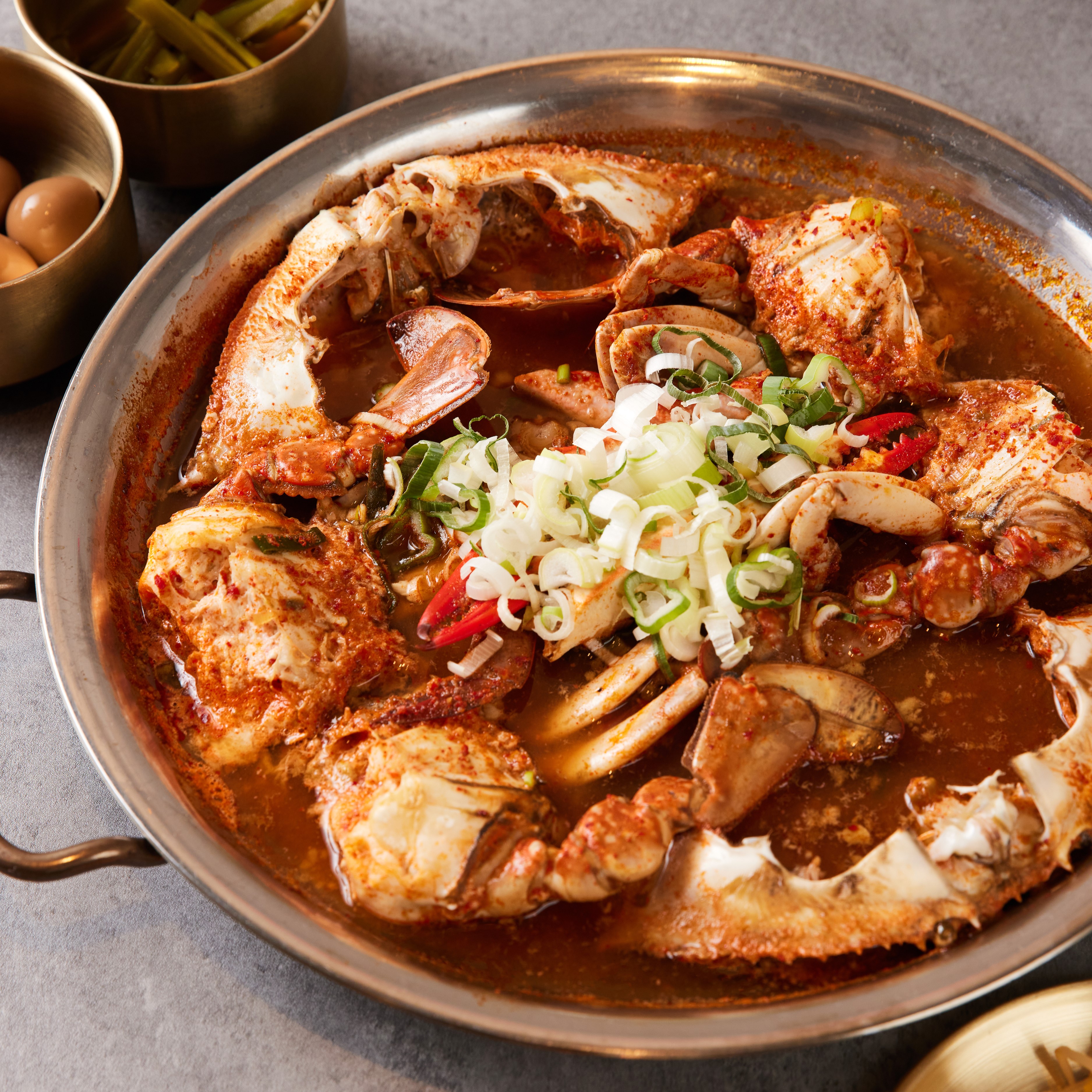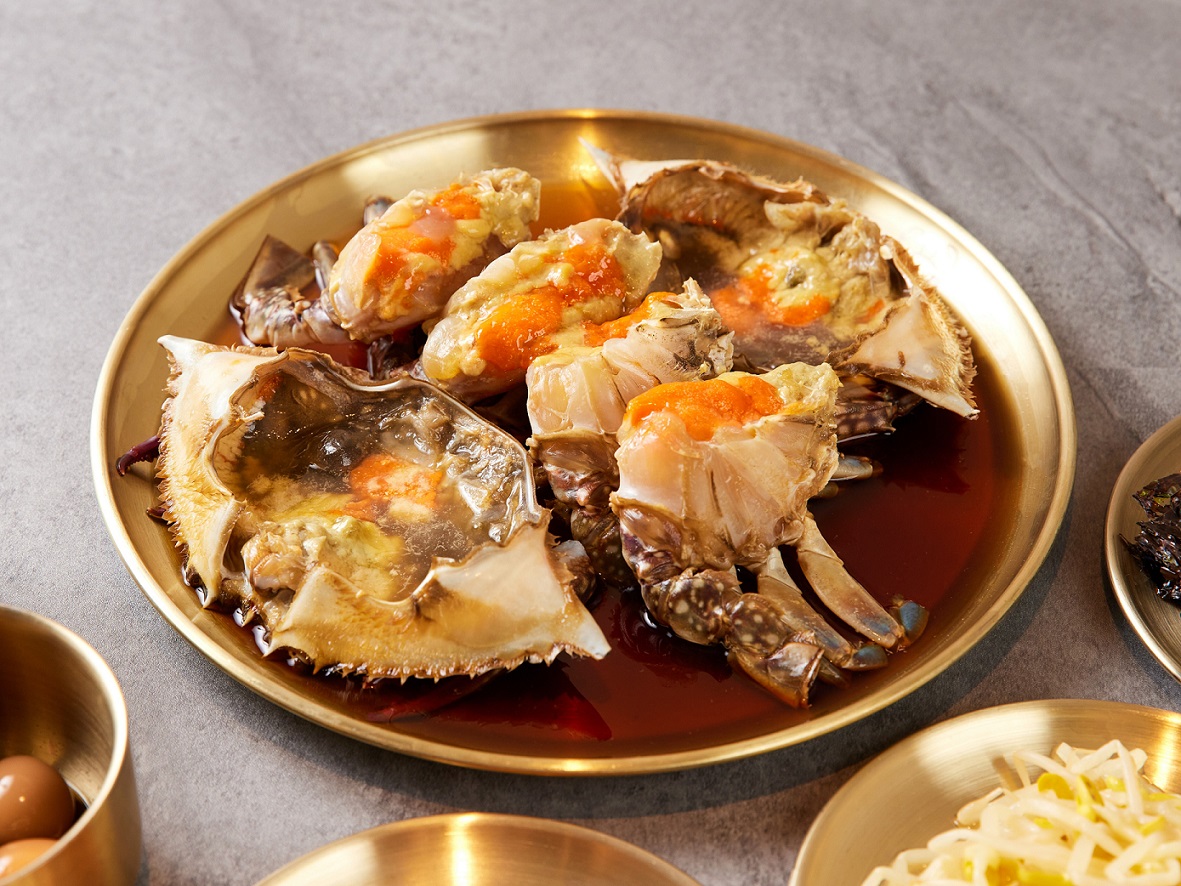 当店では、韓国・ソウルの本場の味をそのままご提供。看板メニューである「カンジャンケジャン」「ヤンニョムケジャン」には、韓国から仕入れた「鮮度」にこだわるワタリガニのメスのみを使用。下処理をしたワタリガニを、創業以来約30年変わらないタレに3日間漬け込みます。醤油ダレに漬けた「カンジャンケジャン」(2杯、8,800円~)は、ぷりぷりと引き締まった身から濃厚な甘みの卵まで、カニのうまみを存分にお楽しみいただける一品です。コチュジャンベースの甘辛いタレに漬け込んだ「ヤンニョムケジャン」(2杯、8,800円~)は、後引く辛さでご飯が止まらなくなる味付けです。ビニール手袋を付けて、やわらかくなったカニの殻を押して身を出しながらかぶりつくのはもちろん、カニミソと漬けダレが溜まった甲羅にご飯を入れて混ぜ、のりに巻いて食べる方法もおすすめです。