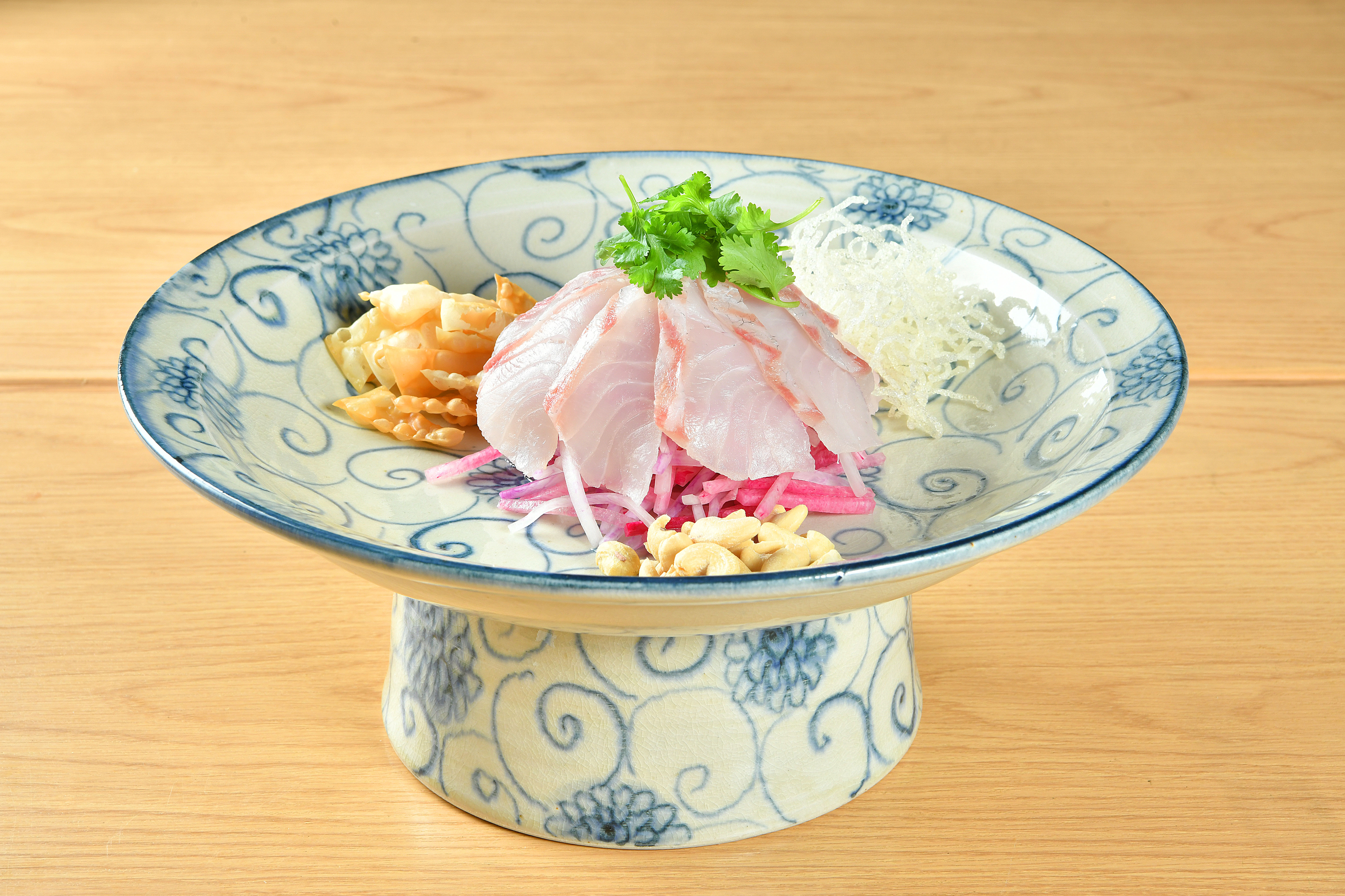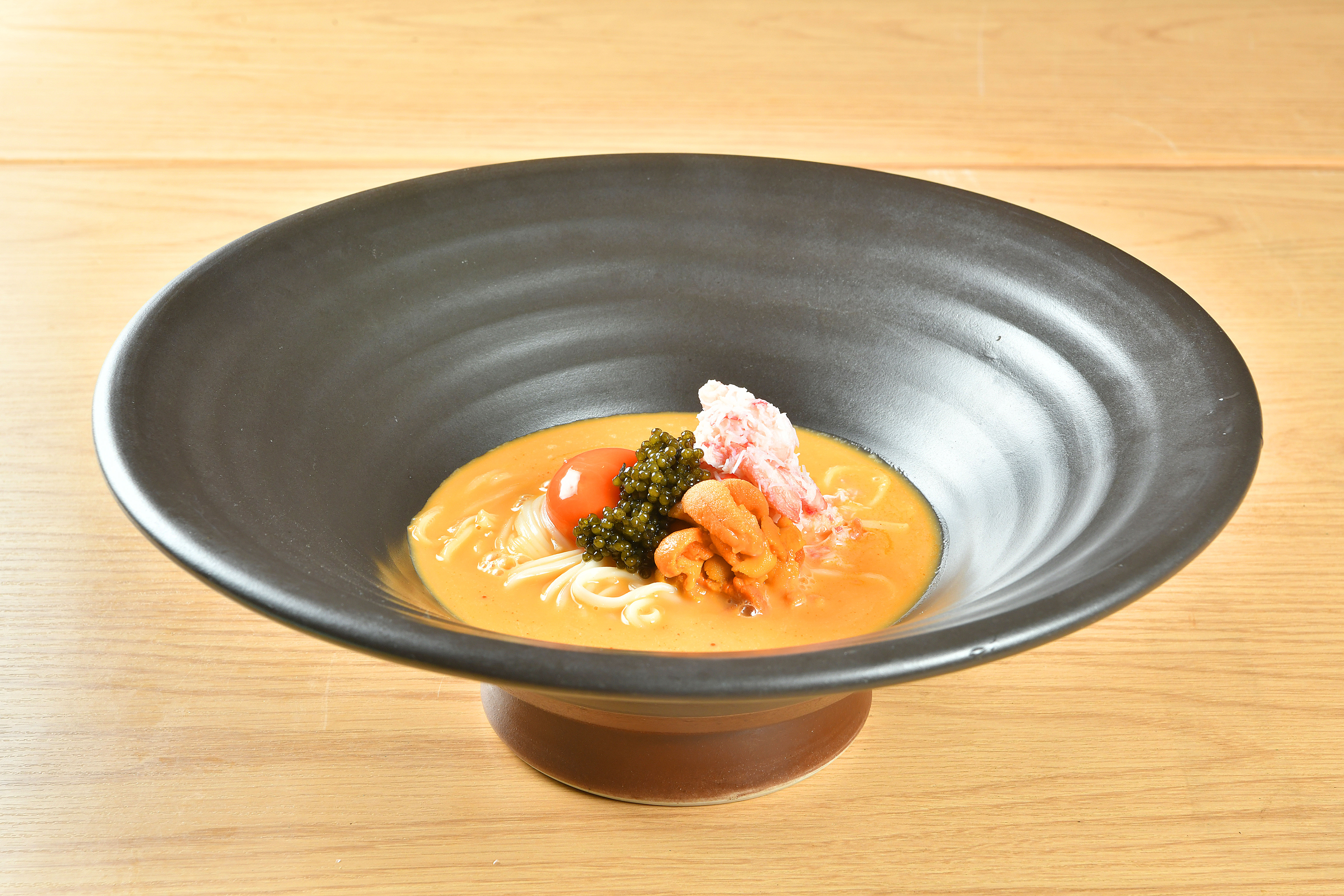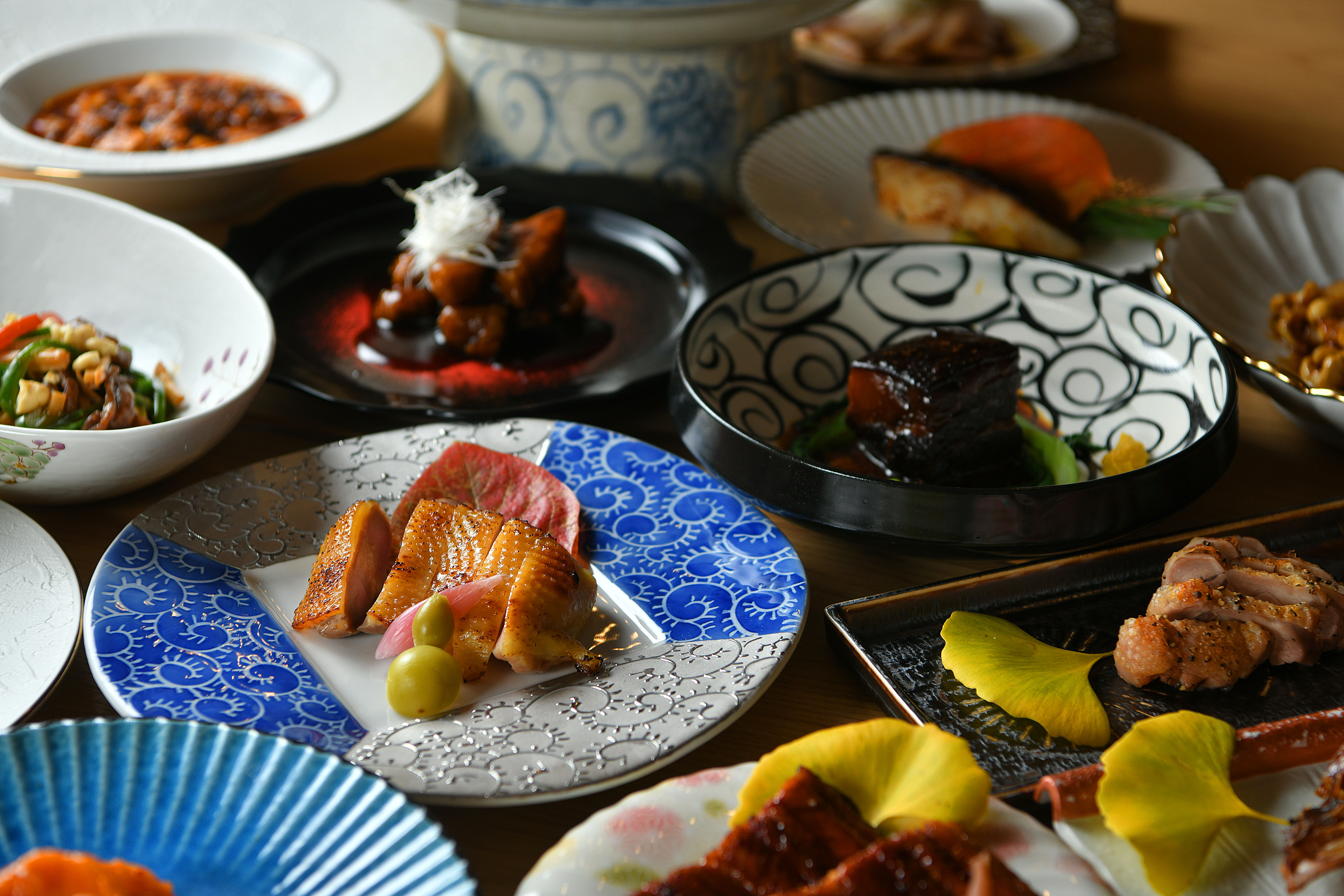 こだわりの料理は、旬の食材を生かした「和・洋・中」の多彩な料理を約100品以上ご用意。食材は全国各地から取り寄せた旬のものを厳選し、一品一品に職人の技と感性を込め、“素材本来の旨味”や“香り”が際立つ繊細な味わいに仕上げております。なかでも看板メニューの“〆素麺”は、食後の余韻をやさしく包む最後の一皿としておすすめです。半田素麺や五色ゆず素麺など全3種の麺からお選びいただけ、「辛味大根鬼おろし素麺」や「至極の雲丹クリーム素麺」など、個性豊かな創作素麺をご提供。冷素麺から温素麺まで、季節や気分に合わせて楽しめる多彩なラインナップをご用意しております。また、料理を彩る器にもこだわり、有田焼や九谷焼といった伝統工芸の器を使用。器そのものの質感や色合いから、より一層、料理の美しさを引き立てます。多彩な料理とのペアリングを意識したドリンクは、季節ごとにラインナップが変わる地酒や、中華料理と相性の良いクラフトハイボール、ウイスキー、ボトルワインなど豊富にご用意致します。