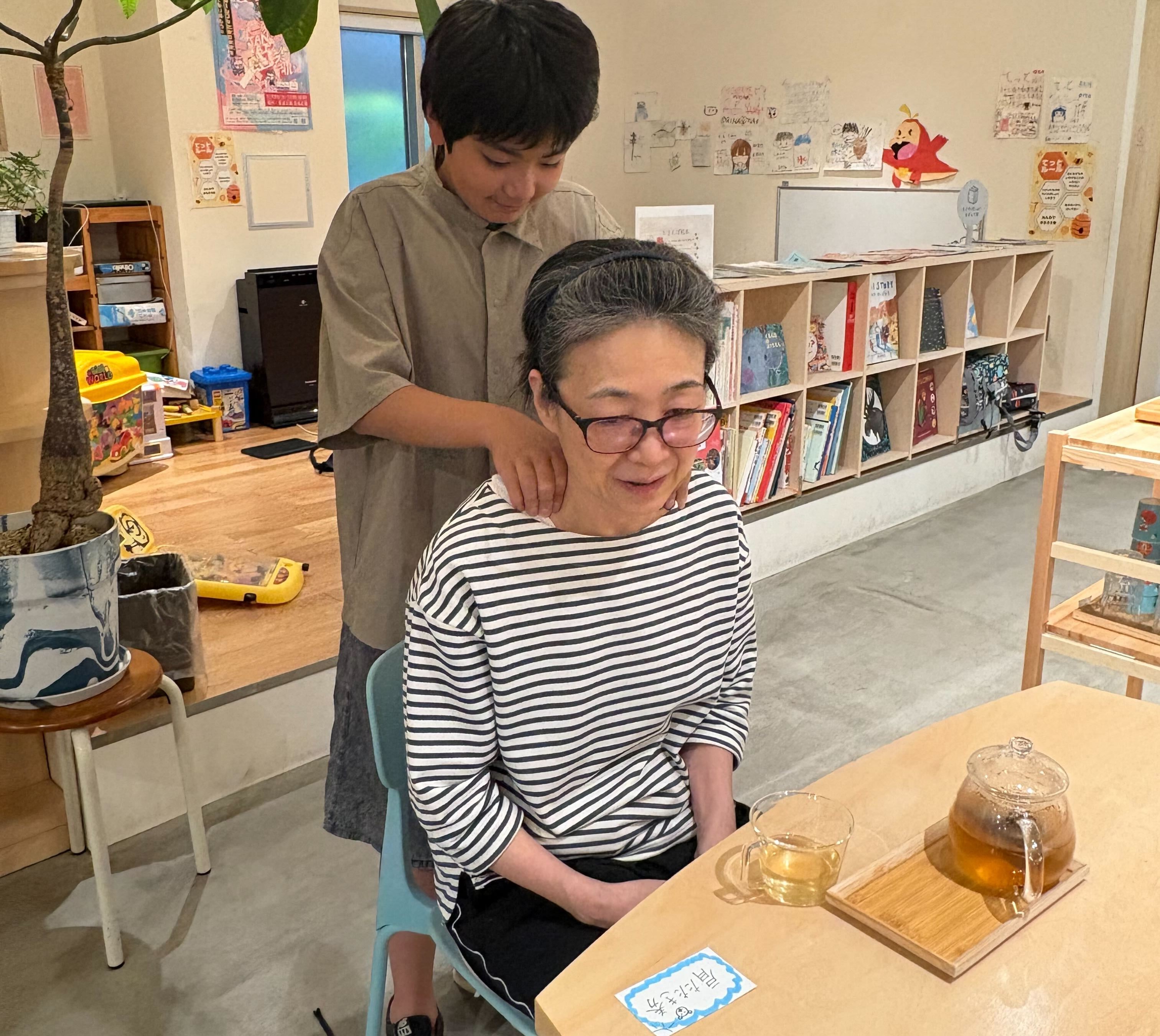 子どもは券を持ってお客様のほうへ行き、お客様がOKすれば肩たたきスタート