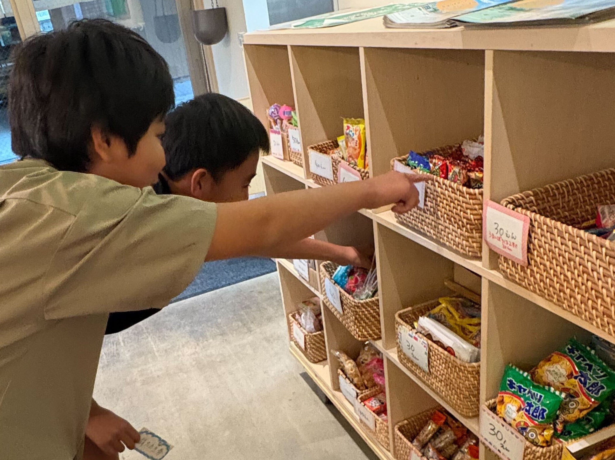 終了後にその券を駄菓子コーナーに持っていくと、50円以下の駄菓子と交換できます