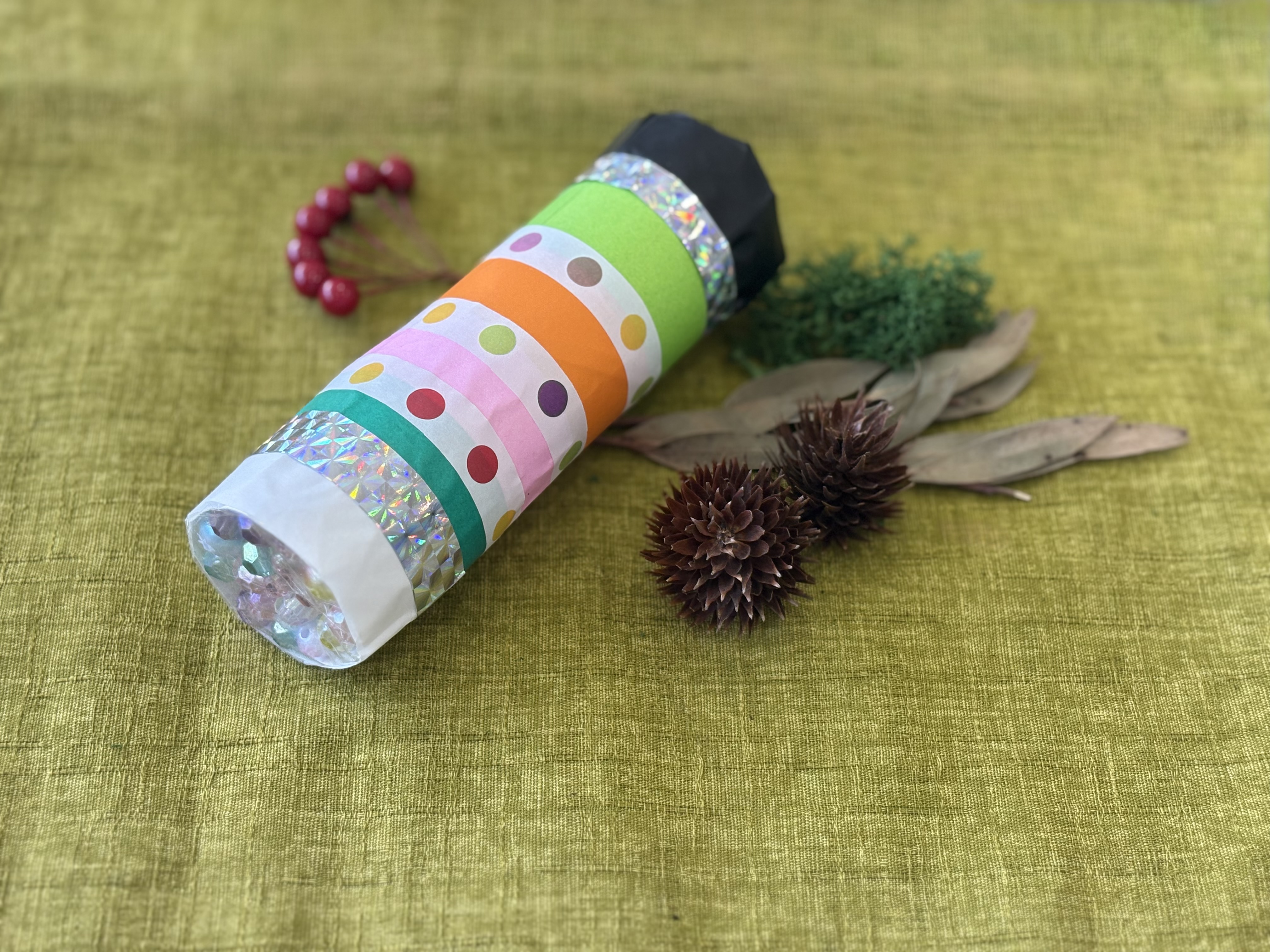 自然素材と廃材を組み合わせて作る万華鏡。