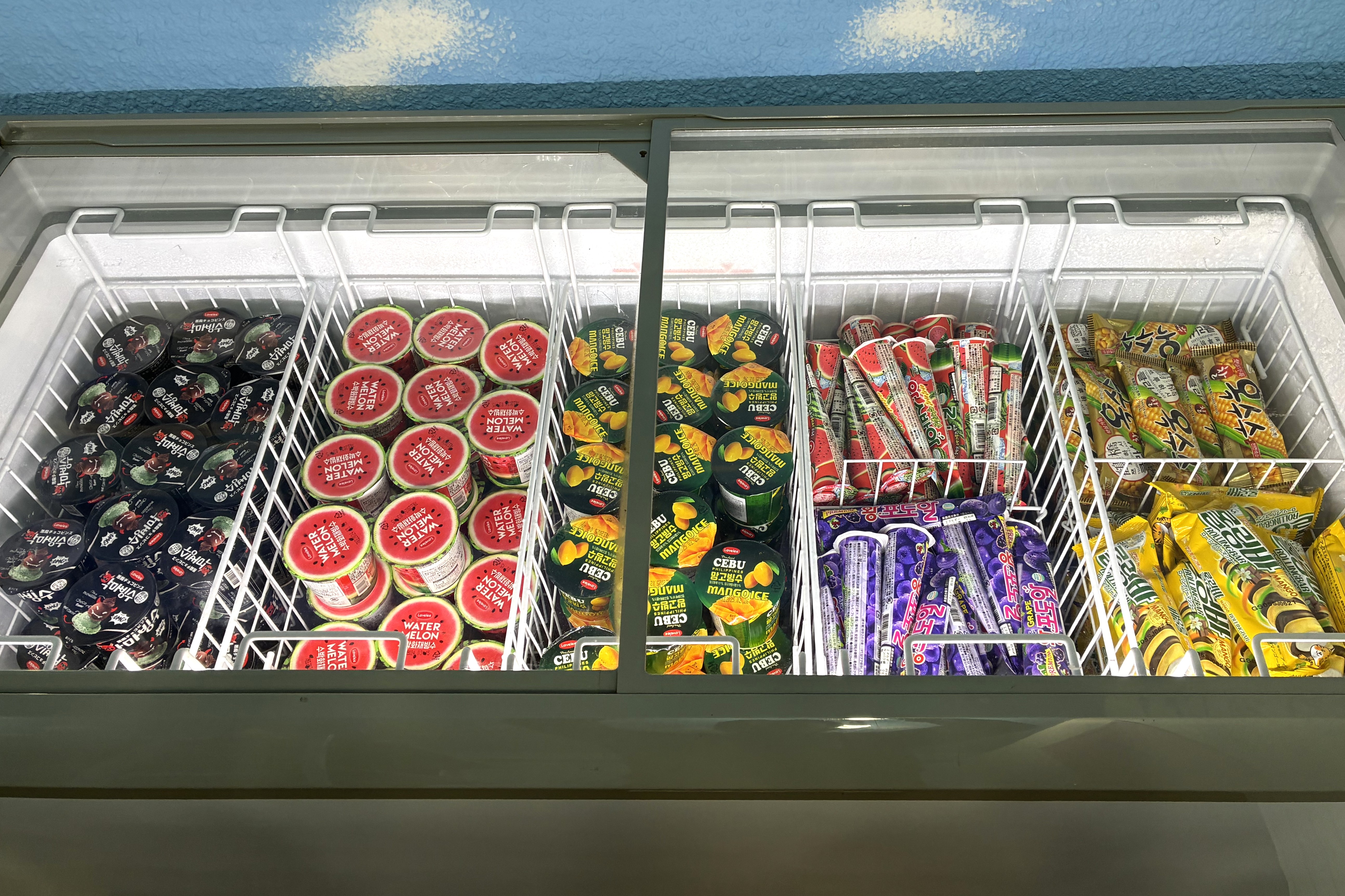 「無人のアイス屋さん」は、韓国のアイスクリームを中心に、インスタント食品、冷凍食品、お菓子、ドリンクなどの韓国食品をラインナップする24時間営業の無人販売所です。2022年8月10日、韓国で親しまれている“無人のアイスクリーム店”文化を日本で初めて取り入れた店舗として、大阪・十三に1号店をオープンし、現在は山梨・甲府、大阪・高井田、大阪・朝潮橋の合計4店舗を展開しています。