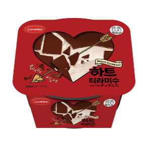 ハート型のチョコレートをスプーンで割ると、とろりとしたティラミスムースが登場。SNSでも話題となった商品です。