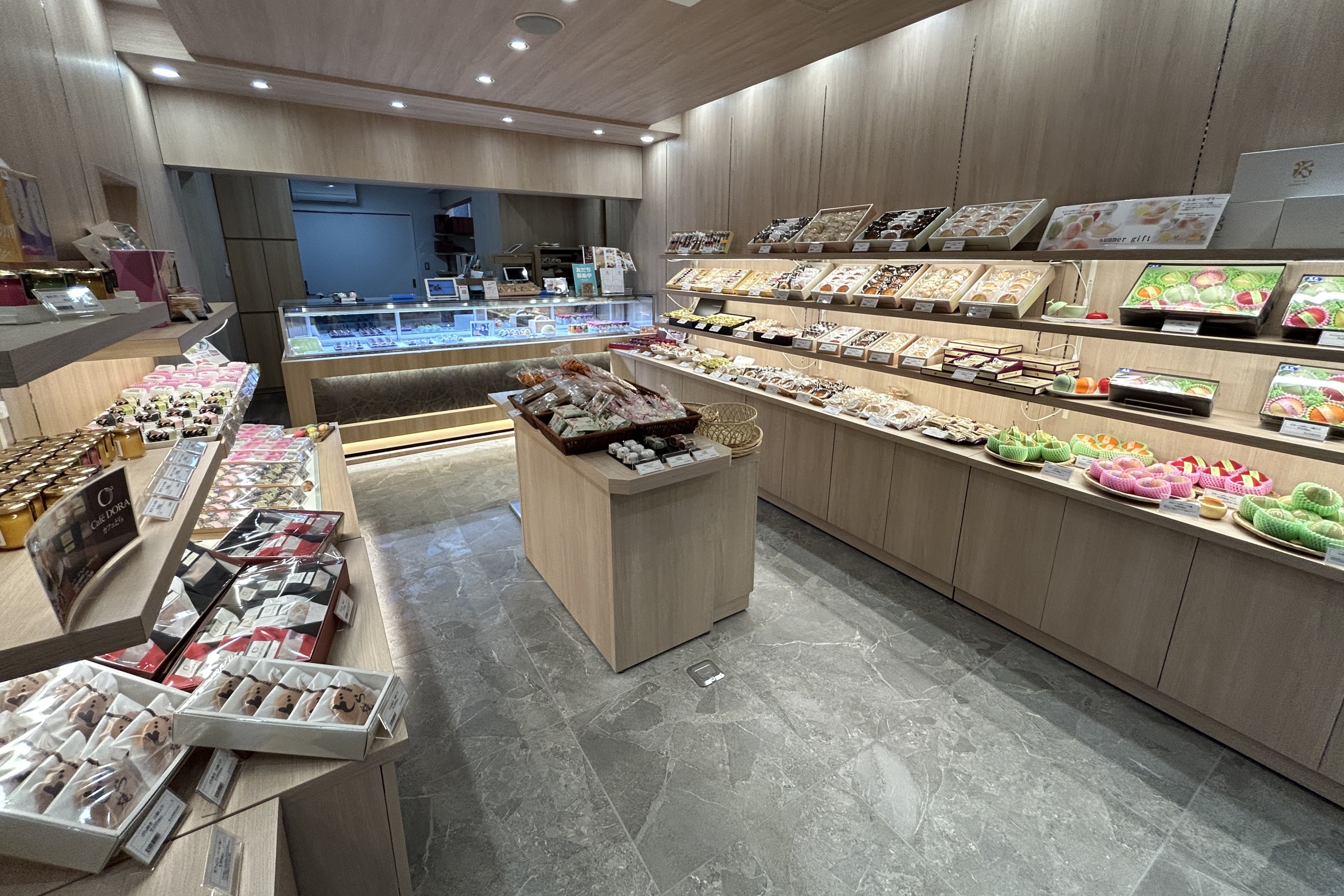 新店は木のぬくもりを感じるデザインを取り入れ、西成ではひときわ目立つ上品な内装になっています。商品は、通販サイトで販売していない店舗限定商品なども取り揃え、和と洋を掛け合わせたハイブリッドスイーツを販売しています。これからも当店の和洋菓子をこの地から発信し、西成を代表するブランドとなるよう邁進してまいります。