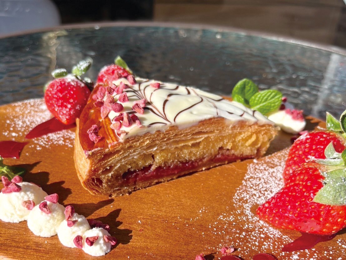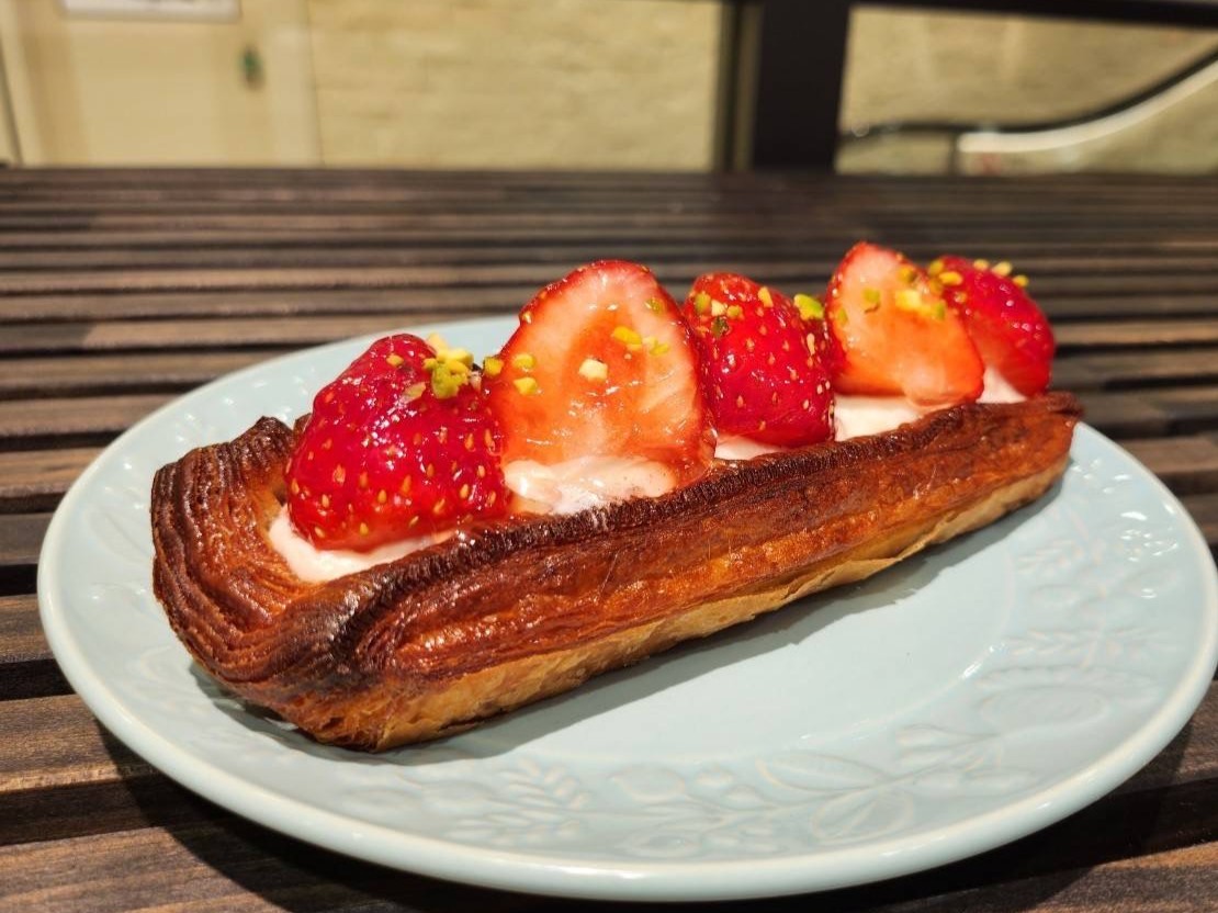 クロワッサン生地にカスタードクリームと生クリーム、とちあいかとピスタチオで仕上げました。
