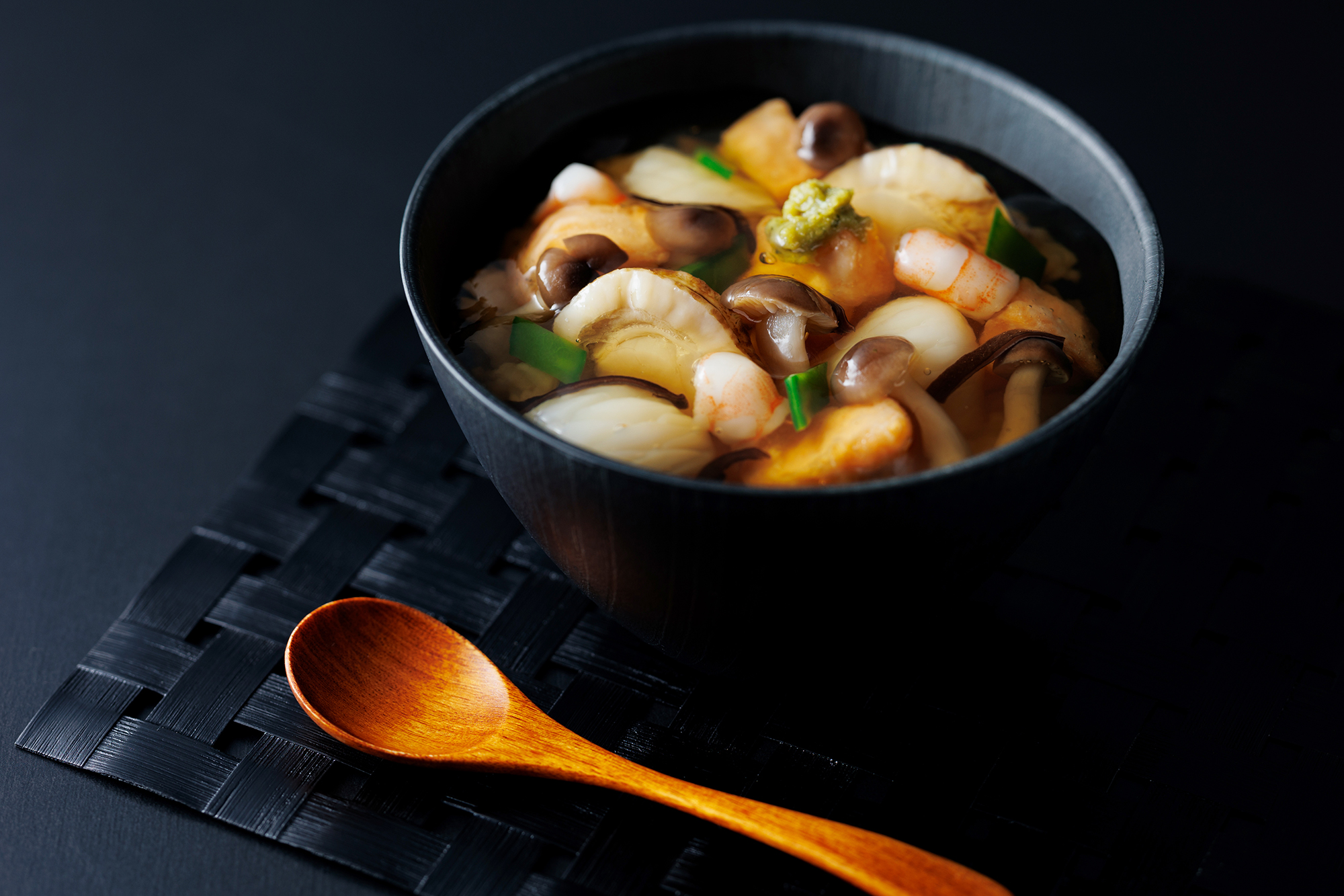 なかでも注目の「料亭のあんかけ丼(海鮮)」は、サーモン、帆立、海老、烏賊の4種類の海鮮を、料亭ならではのこだわりの出汁でひと煮立ちさせ、とろみを加えることで、それぞれの旨みをひとつにまとめた上品なあん掛けに仕上げています。