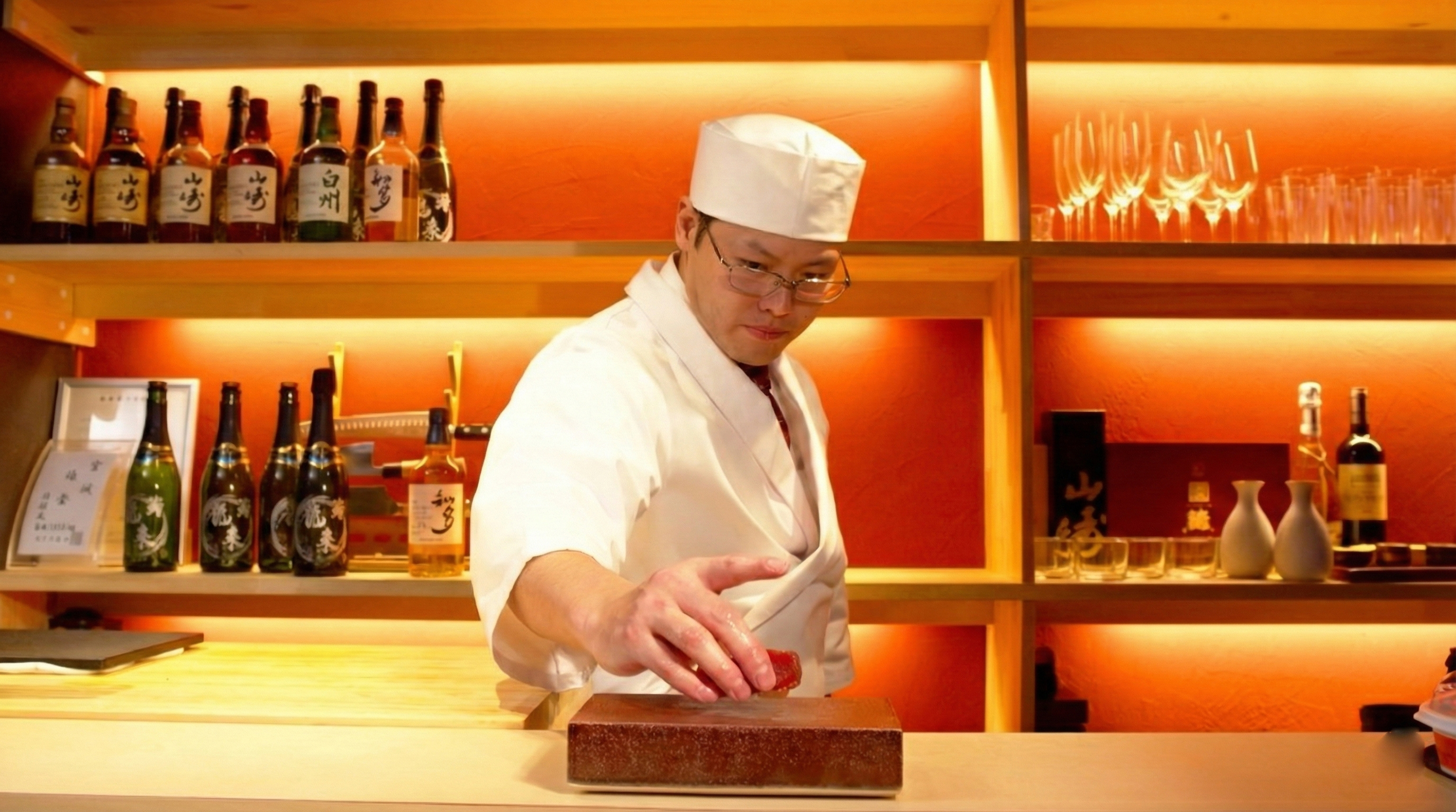 元エンジニア、剣道有段者という異色の経歴を持つ。「職人になる」という夢を諦めきれず、予約困難店「鮨大和」に弟子入り。「本格鮨を親しみやすく」という想いを胸に、北新地での独立を決意しました。