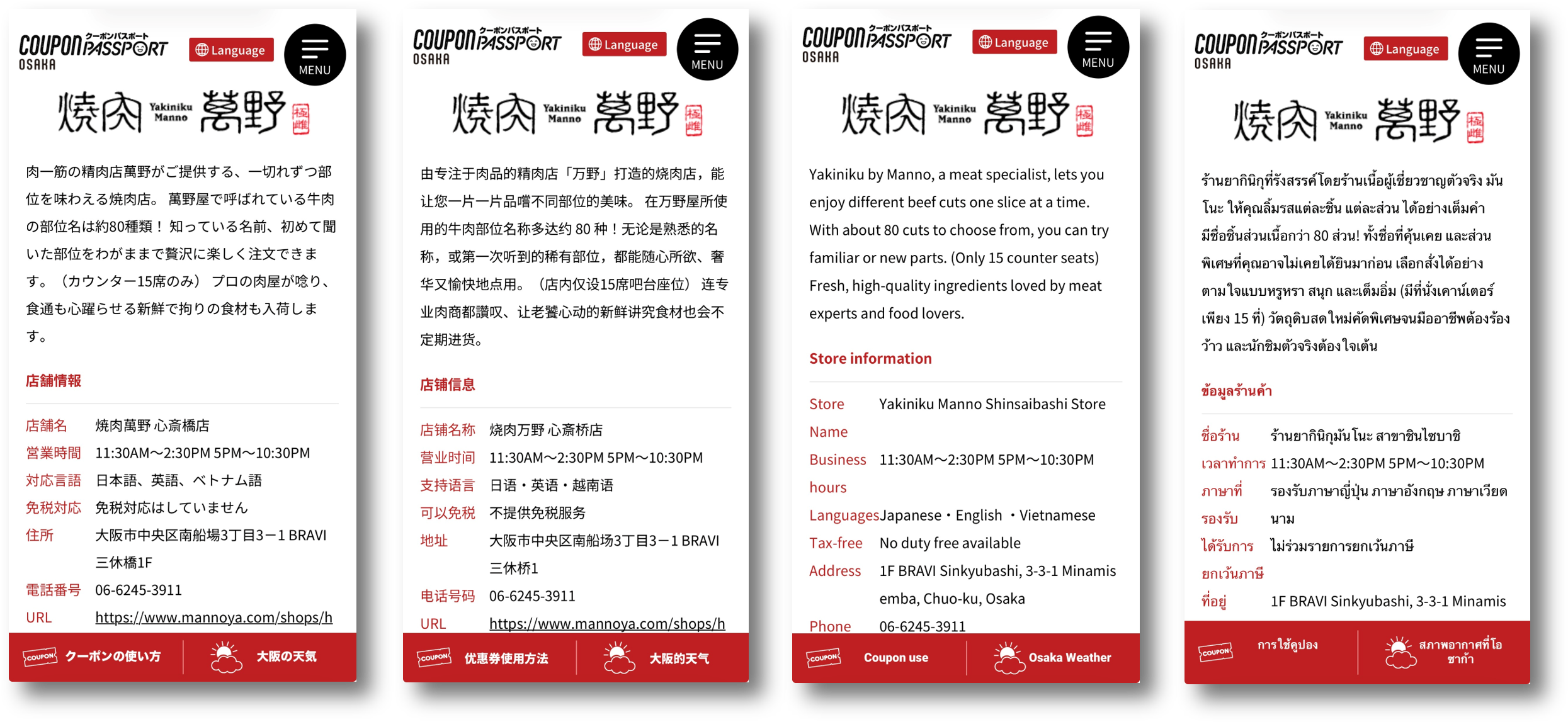 多言語に対応するWeb版「クーポンパスポート大阪」を通して、複数の外国人観光客への情報発信が可能になり、飲食店の認知拡大や来店機会の創出につながることが期待できます。今回のウェルフェアソリューションズとの提携を通じ、大阪市内の飲食店と国内外の観光客をつなぐことで、外国人受け入れの第一歩をサポートします。