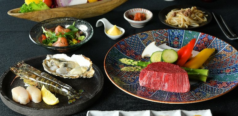 さらに、あわびやオマール海老、伊勢海老、タラバガニなどの海鮮料理も追加注文が可能。併設の人気海鮮酒場「ジャンボ釣船つり吉」の生け簀から選ばれた新鮮な魚介を鉄板で焼き上げます。肉と海鮮を組み合わせた豪華なテーブルコーディネートにも対応し、特別なディナーシーンにも最適です。