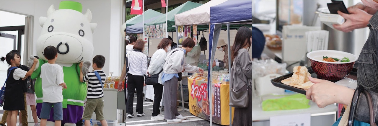 オーリワ (オリーブオイル) / 山岡酒店 (お酒) / ネコのしっぽ (デニッシュバー) / JAMJAMKITCHEN (カレーパン) / アグリキャピタル (たい焼き) / Paddy (焼き菓子) / 京都産業大学 木原ゼミ (ゆずスカッシュ/貝殻フォトフレームワークショップ) / 京西陣菓匠宗禅 (紅白亀甲餅焼き体験) / 中立売鍼灸整骨院 (ワンコイン施術)