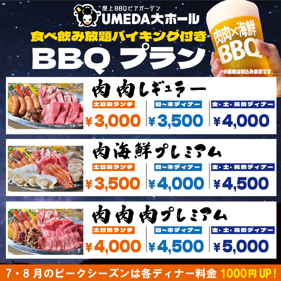 店  名:屋上BBQビアガーデン UMEDA大ホール