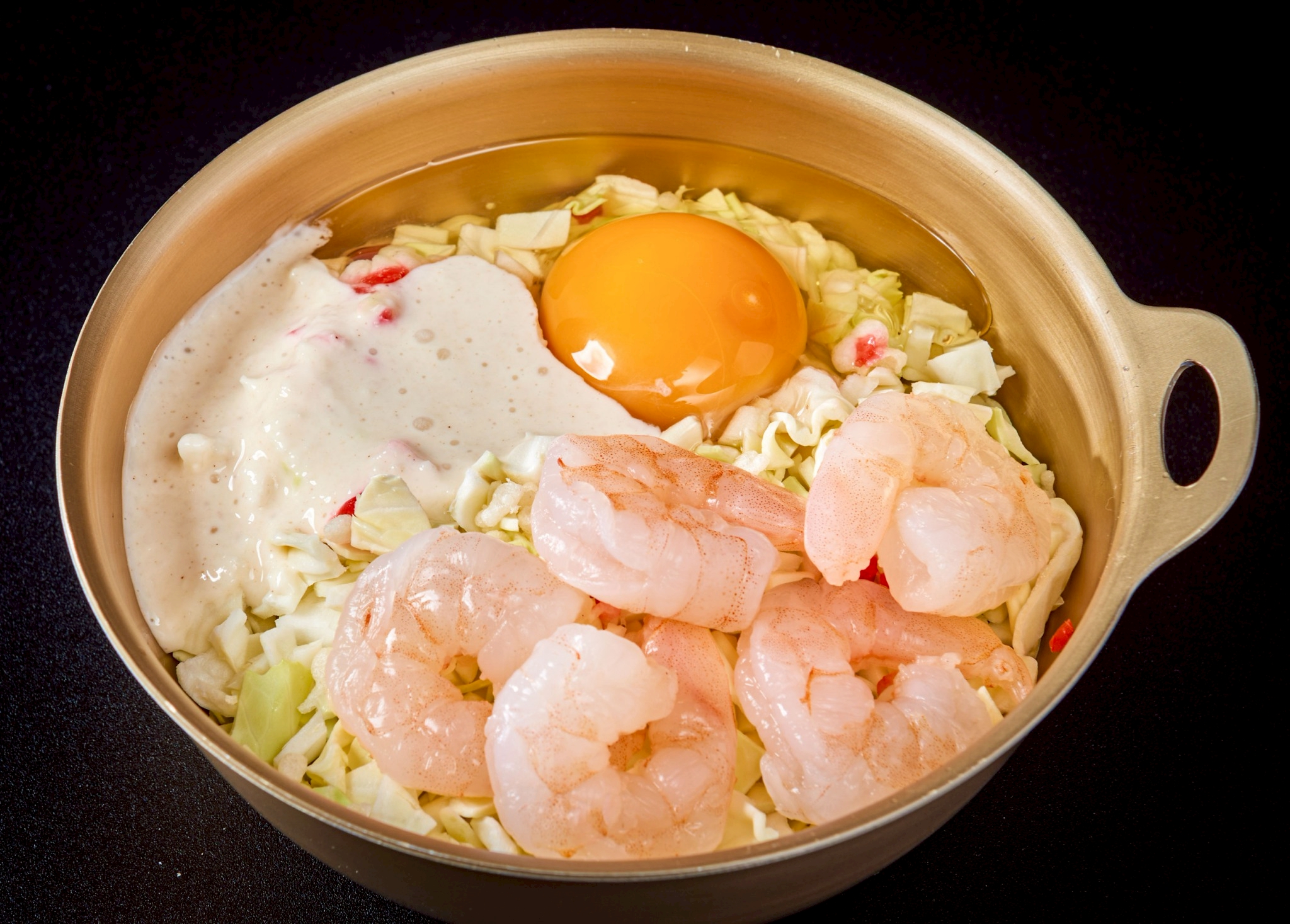 提供するのは、看板メニューのねぎ焼きのほか、客席の鉄板でお客様自身で調理いただくお好み焼きや鉄板メニューなど約40種類。ねぎ焼きは、醤油ベースで甘辛く炊いた「黒毛和牛すじコンニャク煮」をふんだんのせた「ぼっかけ入り」、背脂肪や重量の基準をクリアした三元豚「認定 山形豚」とイカ、エビの「ミックス」(以上1,850円)の2種類。お好み焼きは、イカ玉(950円)や海老玉(1,000円)のほか、納豆やオクラ、なめこなどねばねばとした食材を盛り込んだ「美麗玉」(1,200円)などをそろえます。