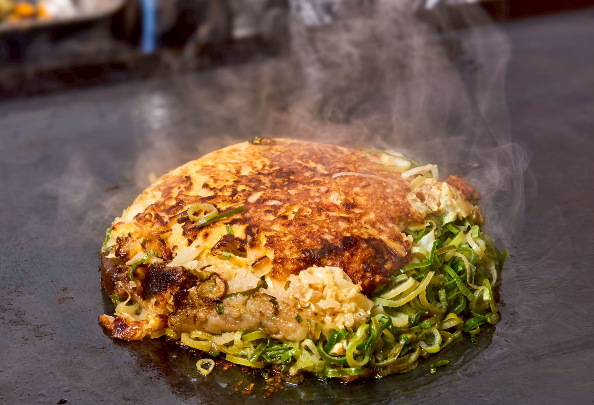 ①“ねぎ盛りすぎ!”の衝撃ビジュアル!大阪のご当地グルメ・牛スジこんにゃく入りねぎ焼きが看板メニュー