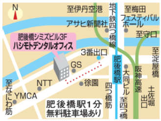 地下鉄四つ橋線「肥後橋駅」下車、3番出口より徒歩1分