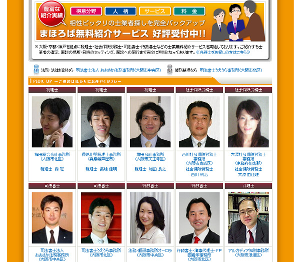 索ウェブサイト「まほろば」を開設、現在では250人の士業者が登録し、毎月