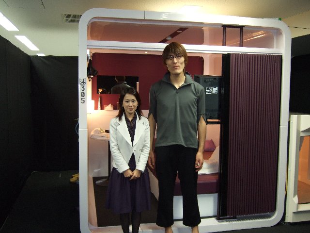 スケールモデルとして、タレントのジャイアント白田(身長195センチ)とキャビンの