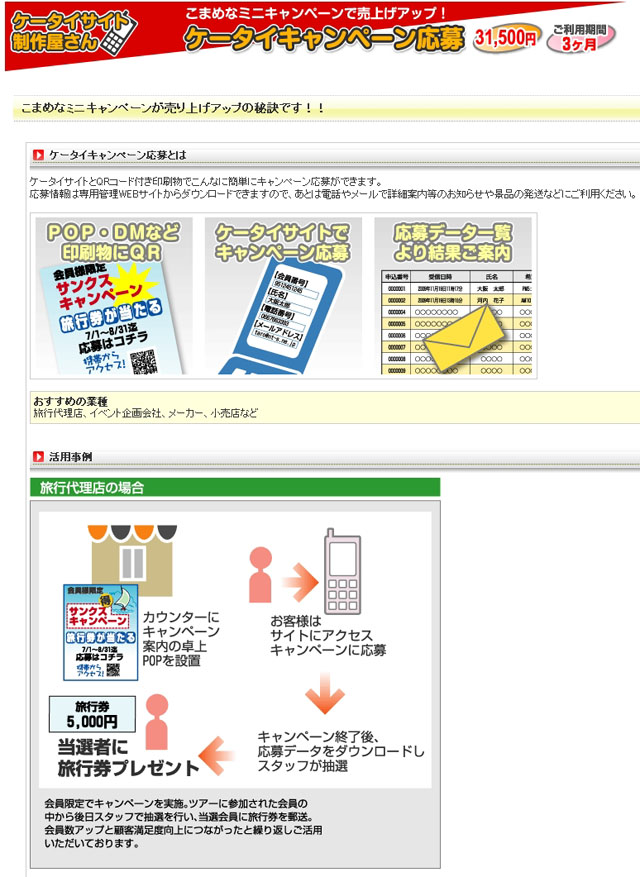 キャンペーン応募ができるケータイサイトを低料金・短納期で制作、公開いたします。