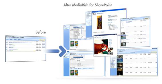 EQ Media Server for SharePointとはMicrosof SharePoint Server のデジタルアセットマネージメントとイメージング機能を強化するAdd Inツールです。