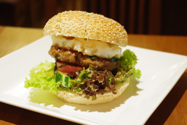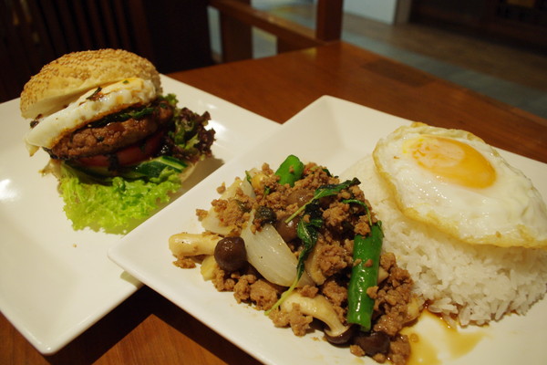 タイ料理の定番を、そっくりそのままハンバーガーにした「タイ式ガパオバー