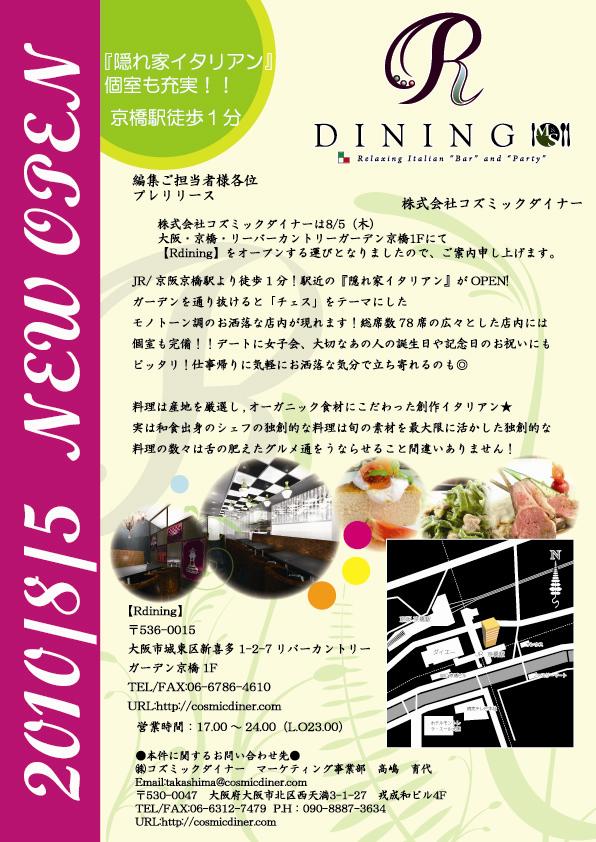 8/5 京橋に ~とっておきにお洒落な大人の隠れ家イタリアン~『Rdining』がNEW OEPN★
