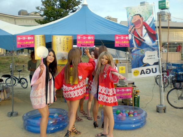 ポージングし、撮影会を行う「東通笑店会・かんばん娘2010 in 夏祭り写真