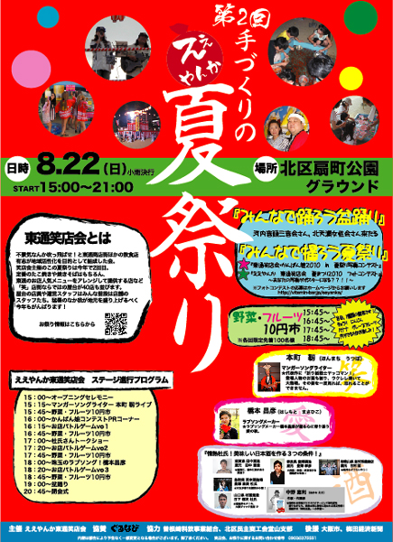 ええやんか手作りの夏祭り」を8月22日、扇町公園にて開催いたします。